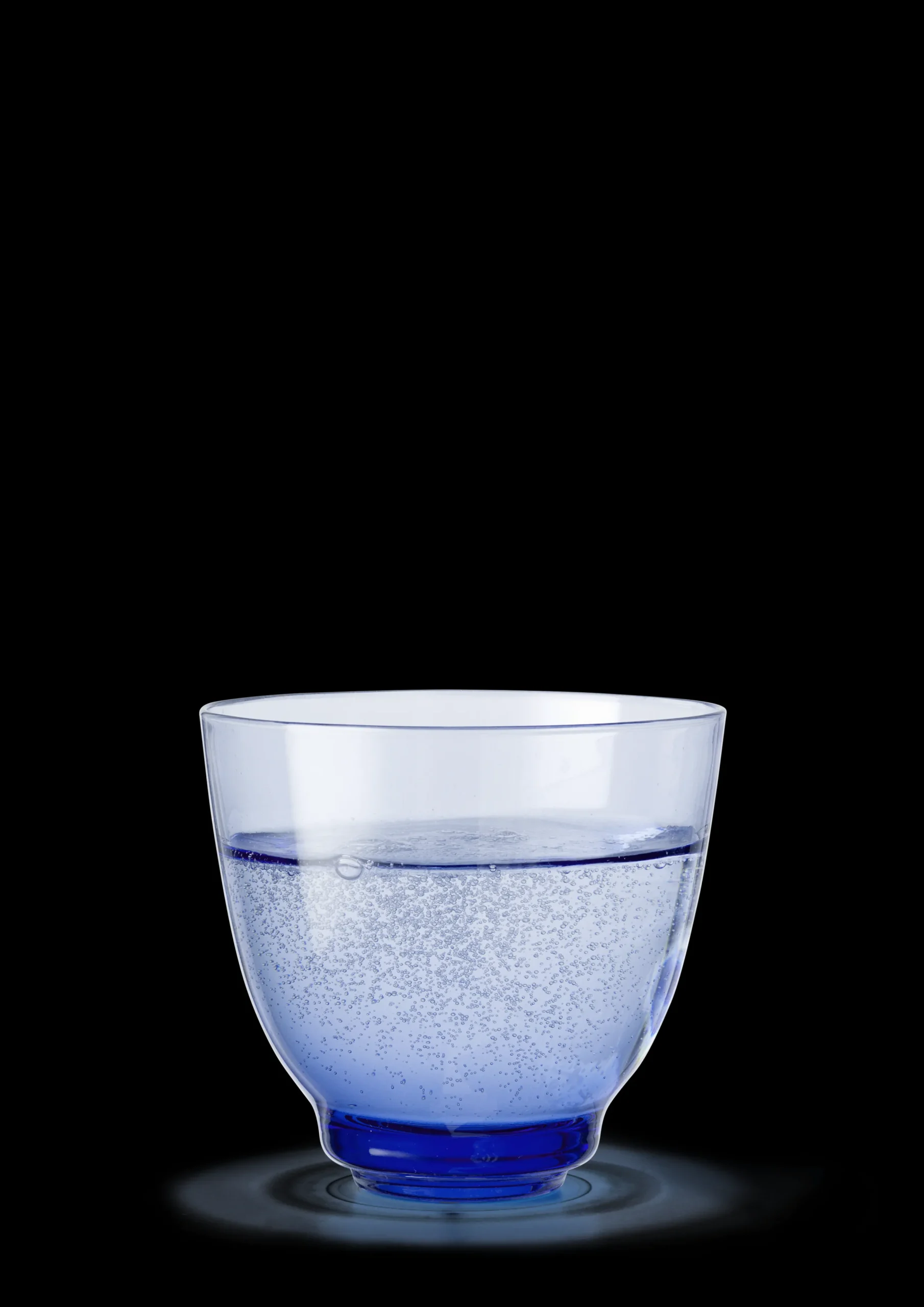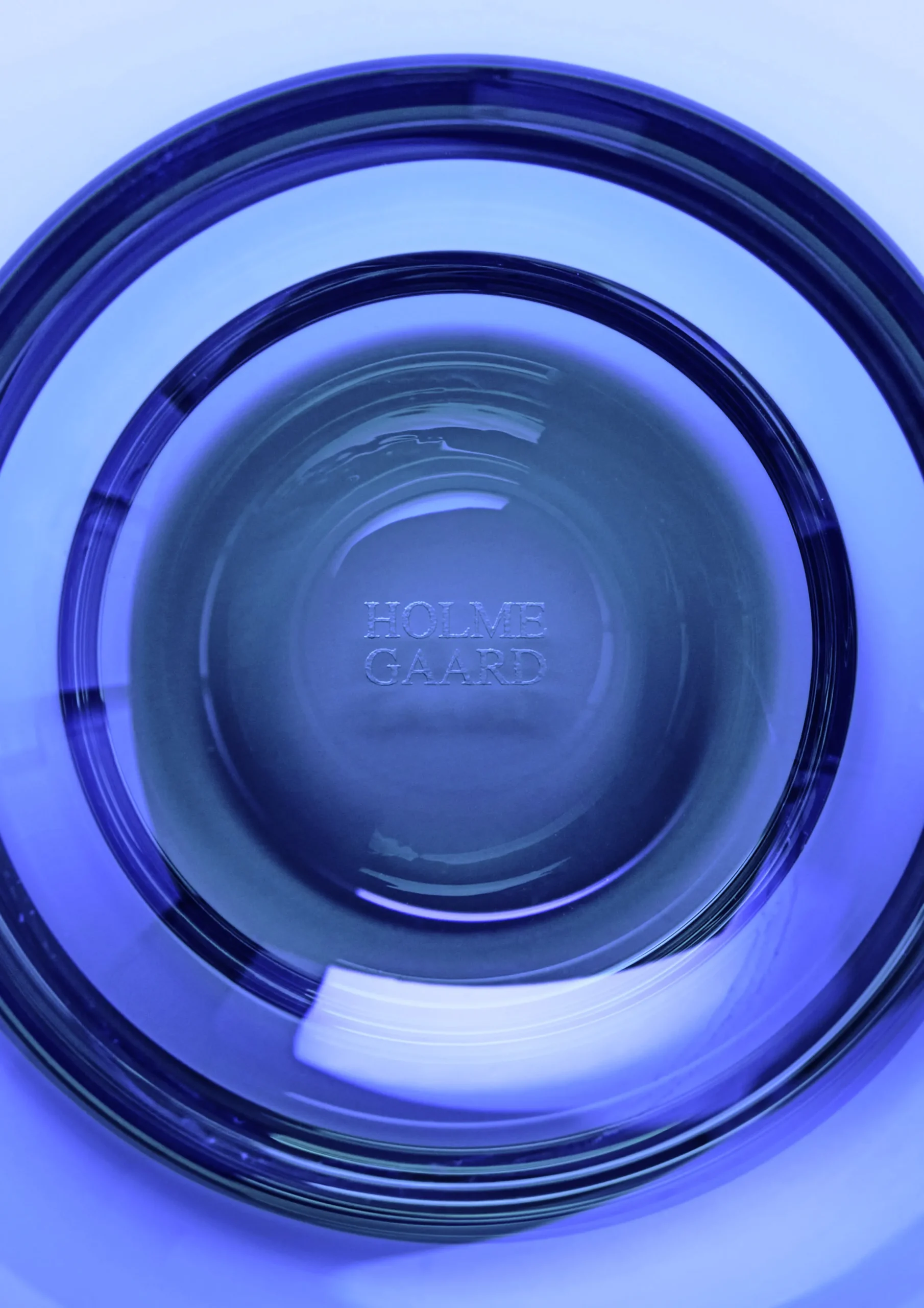 Glasserien Flow gir øyeblikkelig liv til borddekkingen og vekker sansene på nytt. Den munnblåste og elegante serien er karakterisert av et diskré bølgemønster i bunnen, som brer seg som ringer i vannet og tilfører en naturlig og dynamisk følelse til den skulpturelle glassdesignen. Vannglasset i mørkeblått rommer 35 cl og skaper et levende og harmonisk uttrykk på bordet. Fargen på glasset er mest intens i bunnen, der rillene er, men har et gjennomsiktig preg – også der fargene er sterkest. De nye mørkeblå glassene kan fint stå alene, eller kanskje enda mer opplagt – brukes i kombinasjon med de andre fargede glassene i serien. Vakkert kvalitetsglass fra Holmegaard passer for alle og er laget for å brukes – også til hverdags. Vannglasset har en god tyngde i bunnen som gjør at det både står stabilt på bordet og ligger godt i hånden, selv om bunnen snevres litt inn. Som en unik håndverksmessig funksjon er kanten på Flow-glasset flammepolert, noe som gir en flott avrundet kant som også gjør glasset ekstra behagelig å drikke av.