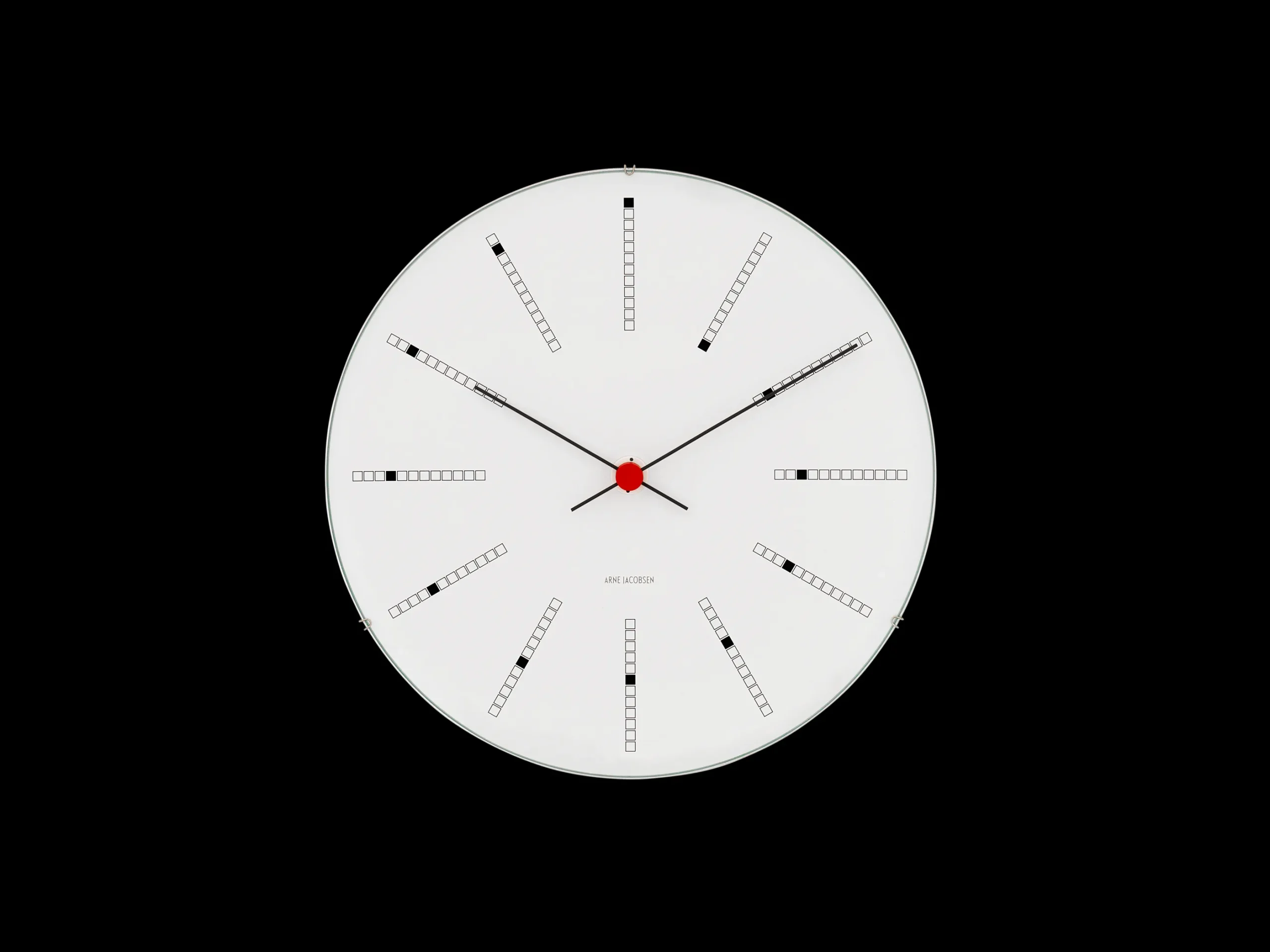 Da Arne Jacobsen skapte veggklokken Bankers Clock til Danmarks Nationalbank i 1971, skapte han samtidig et designikon til boligen. Veggklokken finnes i 4 størrelser og produseres i dag tro mot de originale tegningene. Denne på 16 cm er den minste. Urkassen, som holder den konkave glassfronten, gir klokken et svevende uttrykk på veggen. En god gaveide til bryllup, jubileum, fødselsdag, studenten og andre spesielle anledninger.
