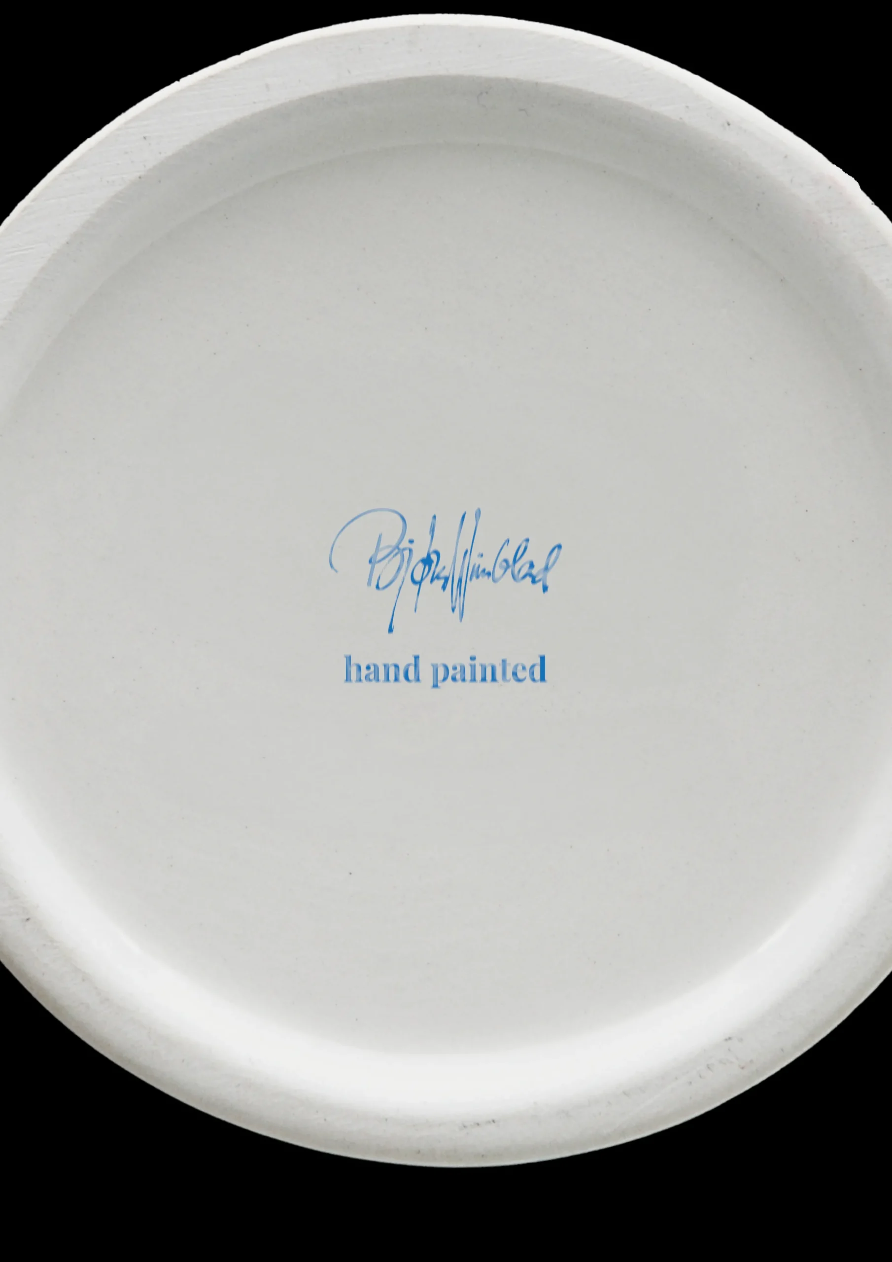 Inviter den nye hattedamen inn og la henne skape glede i boligen med sine fine farger, finurlige detaljer og håndmalte dekorasjoner. Bjørn Wiinblad hadde en forkjærlighet for figurer med hatt, og arkivene rommer utallige eksempler på hvordan hatten dukker opp igjen på stadig nye, kreative og lekne måter. Han designet selvfølgelig ikke små, fine pyntehatter. Nei, det var store, voluminøse kreasjoner som var både skulpturelle og nyskapende i uttrykket – akkurat som i serien Lady with hat. Lysestaken i blankglasert keramikk med en høyde på 16 cm er hovedsakelig rosa i uttrykket og har detaljer i grønn, gul og blå. Som et lite tårn vokser hatten opp mot himmelen, mens den fine damen balanserer hatten med hendene sine. Det gir lysestaken et finurlig og fantasifullt uttrykk som passer perfekt i en leken boliginnredning. Bruk den til både hvite, fargede, rette og vridde lys – eller hvorfor ikke med en enkel, dekorativ tørked blomst? Designen inviterer deg til å være kreativ i innredningen. En annen detalj som går igjen i serien, er de små, figurative blomstene som er plassert langs skyggen på hattene. Enda en dekorativ detalj inspirert av Bjørn Wiinblads originale former og farger. Akkurat som Bjørn Wiinblad representerer Lady with hat alt som er tullete, skjevt, kreativt og vidunderlig. Lysestaken er ikke beregnet for vann, men kan brukes til tørkede blomster.