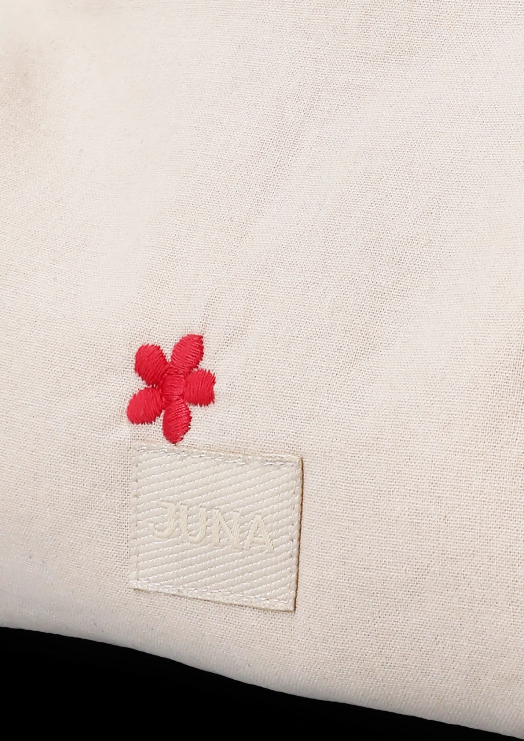 Sanselig, komfortabel og laget av økologiske og resirkulerte tekstiler. JUNA handler om gleden ved å omgi seg med luksuriøse tekstiler som gjør livet vakrere, mykere, mer fargerikt og morsommere. Med Daisy Nola-sminkepungen fra JUNA får du en søt og praktisk quiltet pung til alt fra blush til mascara, som samtidig er enkel å ha med på farten. Den romslige sminkepungen måler 23x15x5 cm og kan også brukes til reisedokumenter, skrivesaker eller andre småting du vil holde orden på i vesken eller hjemme. Daisy-designet er en nytolkning av det klassiske blomstermønsteret, der en brodert blomst i kontrastfarge vakkert og stilfullt spiller sammen med JUNAs alltid enkle og moderne design. Daisy Nola-sminkepungen er sydd i 100% økologisk bomull i den koselige og varme, men likevel litt dristige fargekombinasjonen sand/rød med fyll i 100% resirkulert polyester. Den tåler maskinvask opp til 40 grader, noe som ikke bare er skånsomt for miljøet, men også for bomullsstoffet, som får lengre levetid ved den lavere temperaturen. Det er vakkert, ansvarlig og holdbart – og samtidig morsomt og uhøytidelig. Typisk JUNA.