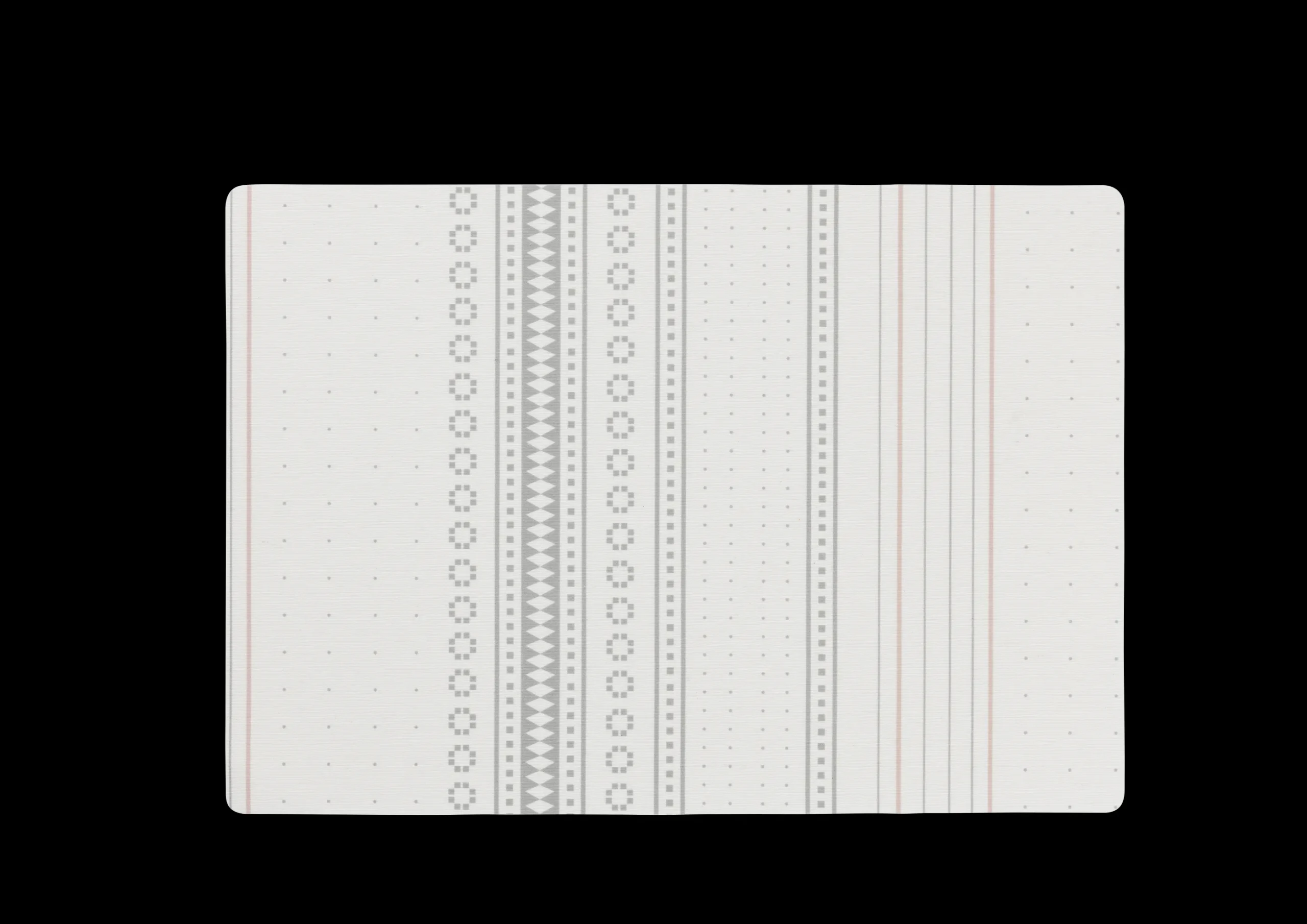 Elegant, hvit dekkebrikke med vakre, boheminspirerte striper. Stripene har fine mønstre av prikker og romber som gir et romantisk og feminint utseende. Dekkebrikken er en del av JUNA sin Cosmos-serie og måler 43×30 cm. Den er laget av 50 % bomull og 50 % polyester med akryl, noe som gjør den ekstremt enkel å rengjøre – den trenger bare å tørkes av med en fuktig klut. Cosmos dekkematten har også en praktisk skumbakside som beskytter spisebordet ditt mot varme plater og gjør at det sitter spesielt godt på bordet.