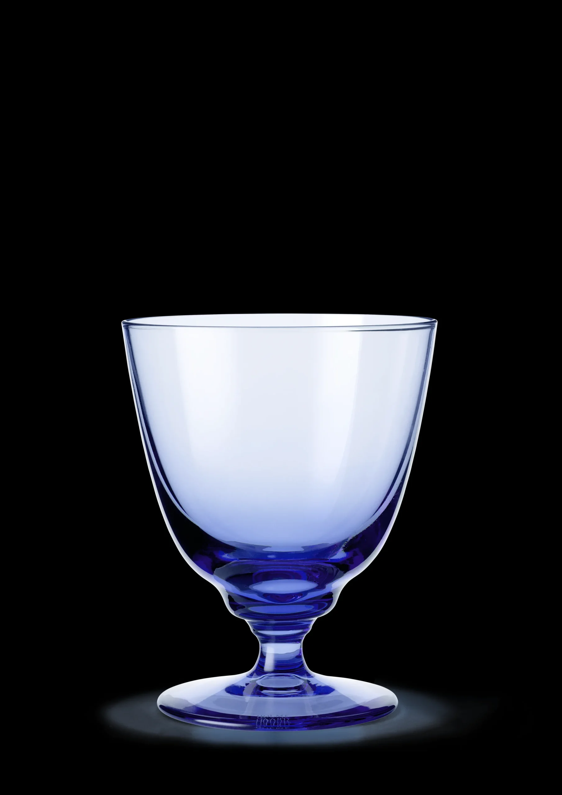 Glasserien Flow gir øyeblikkelig liv til borddekkingen og vekker sansene på nytt. Den munnblåste og elegante serien er karakterisert av et diskré bølgemønster i bunnen, som brer seg som ringer i vannet og tilfører en naturlig og dynamisk følelse til den skulpturelle glassdesignen. Vinglasset i mørkeblått rommer 35 cl og skaper et levende og harmonisk uttrykk på bordet. Det har samme form som vannglasset i serien, men har fått et lite løft. Inspirasjonen til det lave vinglasset er hentet fra Holmegaards arkiver, der det i gode gamle dager var vanlig med lavere vinglass. I dag betyr den diskré, lille stetten at vinglasset i Flow-serien fungerer perfekt som et avslappet allround-vinglass til rødvin, hvitvin, rosé og alt med bobler. Fargen på vinglasset er mest intens i bunnen, der rillene er, men har et gjennomsiktig preg – også der fargene er sterkest. De nye mørkeblå glassene kan fint stå alene, eller kanskje enda mer opplagt – brukes i kombinasjon med de andre fargede glassene i serien. Vakkert kvalitetsglass fra Holmegaard passer for alle og er laget for å brukes – også til hverdags.