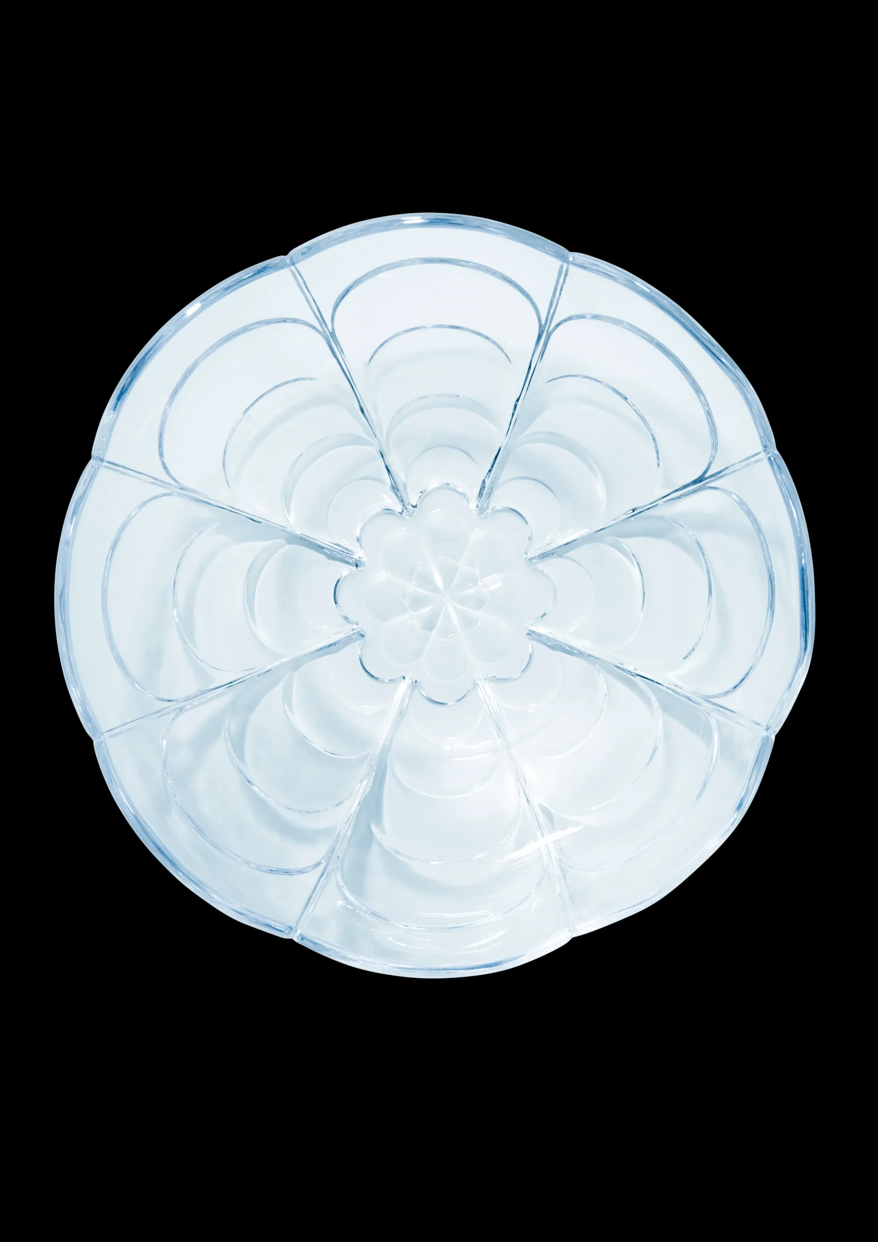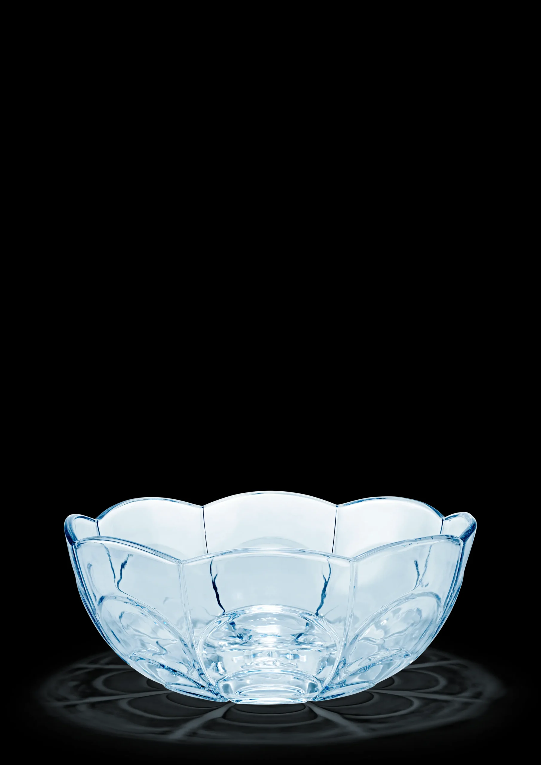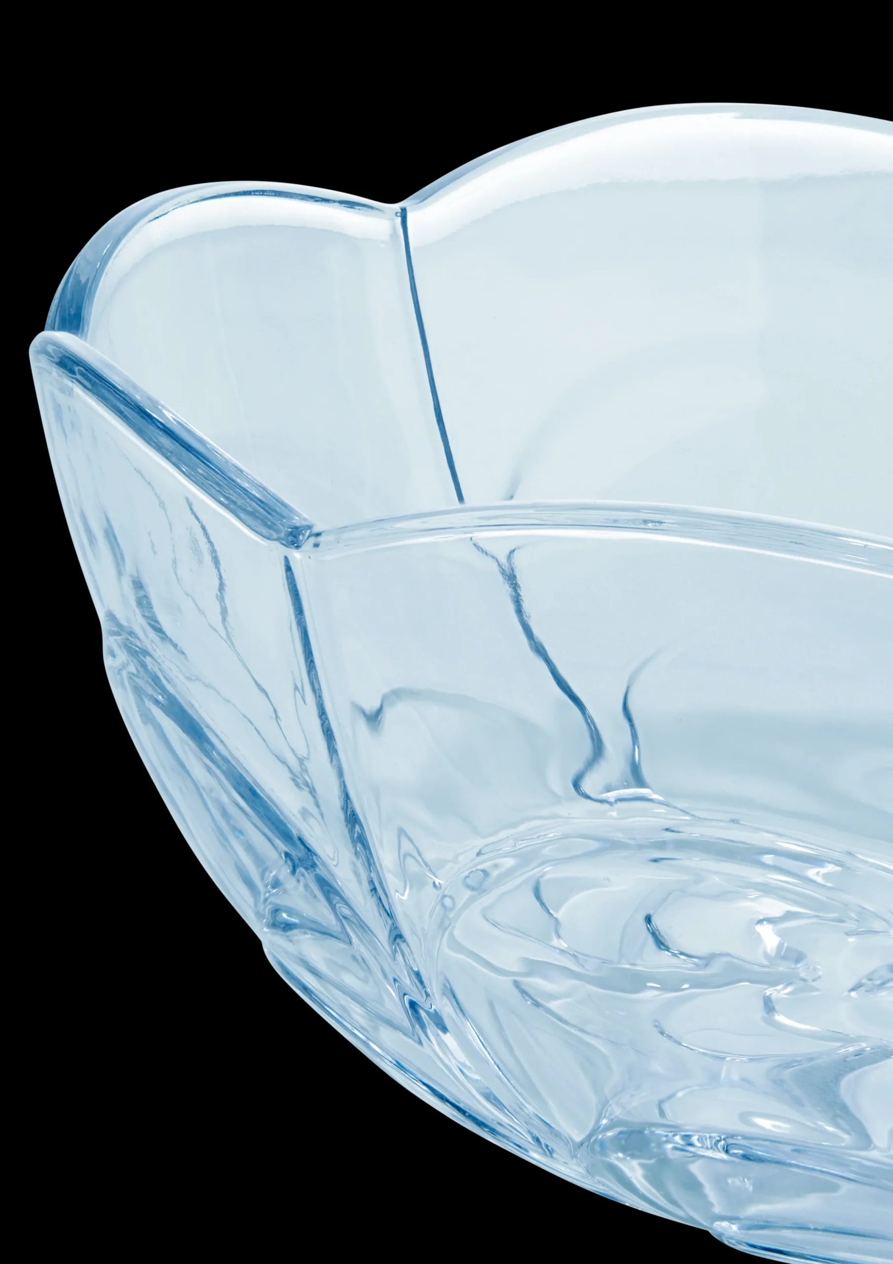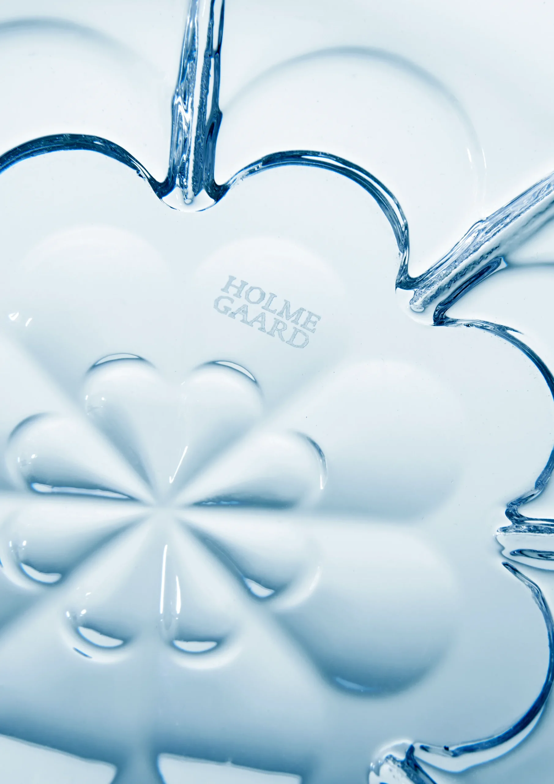 Holmegaards Lily-serie er inspirert av de forskjellige stadiene i vannliljens blomstring og har det samme lette og poetiske uttrykket som den vakre blomsten selv. Skålen i Blue Iris har en diameter på 23 cm og er perfekt til en gammeldags dansk eplekake med ristet havre, pisket krem, eplemos og ripsgelé på toppen. Eller til en fruktsalat, grønn salat eller som fruktskål. Blomstermønsteret stikker ut som relieff i det støpte glasset, som er både gjennomsiktig og taktilt. Linjene i designen er enkle, myke og organiske, men på en strømlinjeformet og stilfull måte som skaper en fin balanse mellom et romantisk og moderne uttrykk. Skålen kan vaskes i oppvaskmaskin, så du kan bruke den daglig uten å bekymre deg for å måtte vaske den opp for hånd. Serien inneholder også en mindre skål, desserttallerken og vannglass – alle i fire forskjellige farger. Alle delene i Lily-serien er laget av farget glass, slik at fargen holder seg vakker over tid.