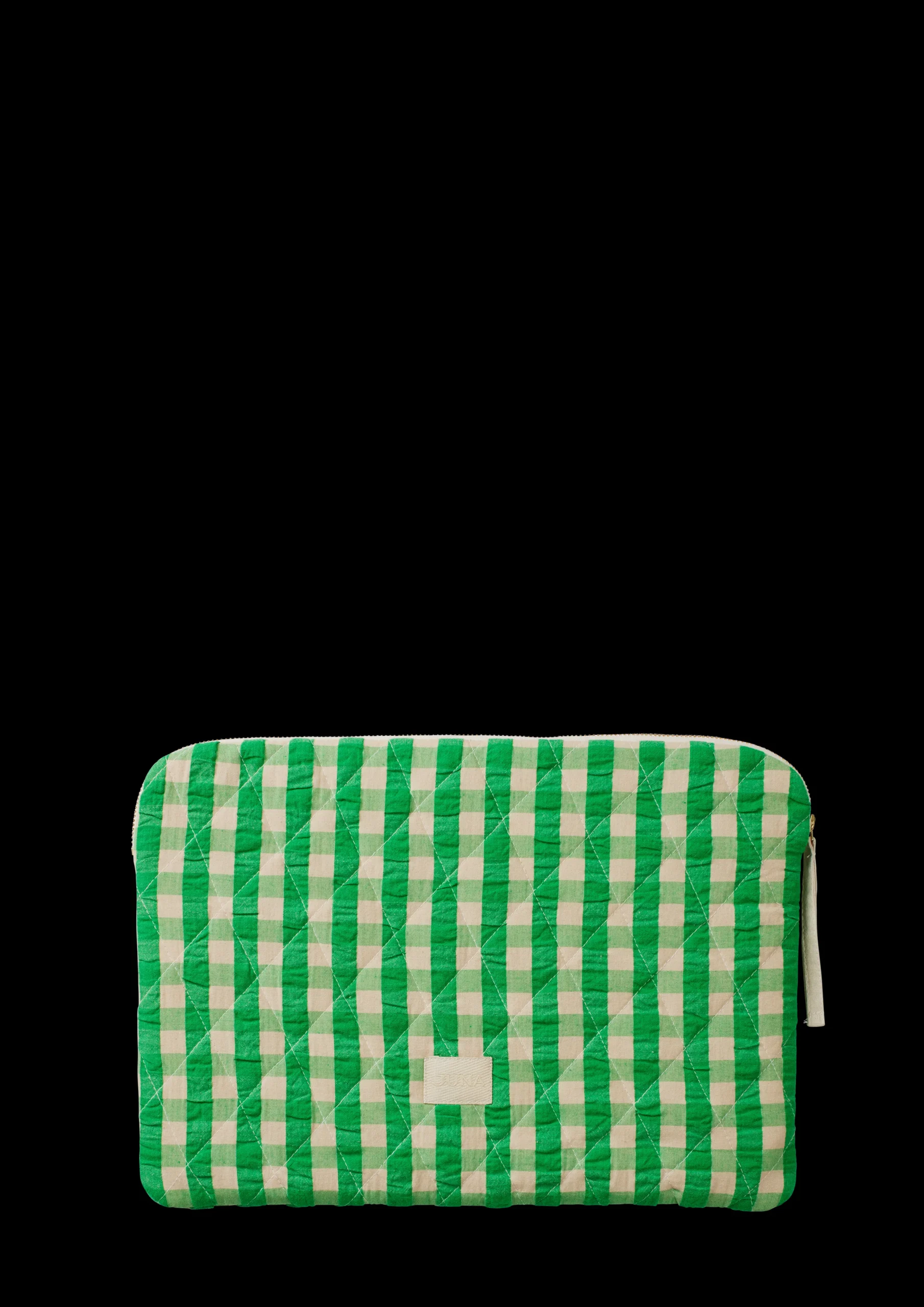 JUNA handler om gleden ved å omgi seg med tekstiler som gjør livet vakrere, mykere, mer fargerikt og morsommere. Og med Bæku0026Bølge Pondus fra JUNA får du et smart quiltet sleeve, som med en størrelse på 38×28 cm passer perfekt til din bærbare datamaskin på 15 tommer. Den utvendige delen av det både holdbare og praktiske Pondus-computersleeve er sydd i 100% GOTS-sertifisert Bæku0026Bølge-tekstil i fargekombinasjonen grønn/sand, mens innsiden er foret med 100% økologisk bomull. Og som en del av JUNAs ansvarlige designfilosofi er sleevet naturligvis som alltid produsert ut fra sirkulære prinsipper av overskuddsstoff fra produksjonen av JUNA-sengetøy. Det tåler maskinvask opp til 40 grader, noe som ikke bare er skånsomt for miljøet, men også for bomullsstoffet, som får lengre levetid ved den lavere temperaturen.