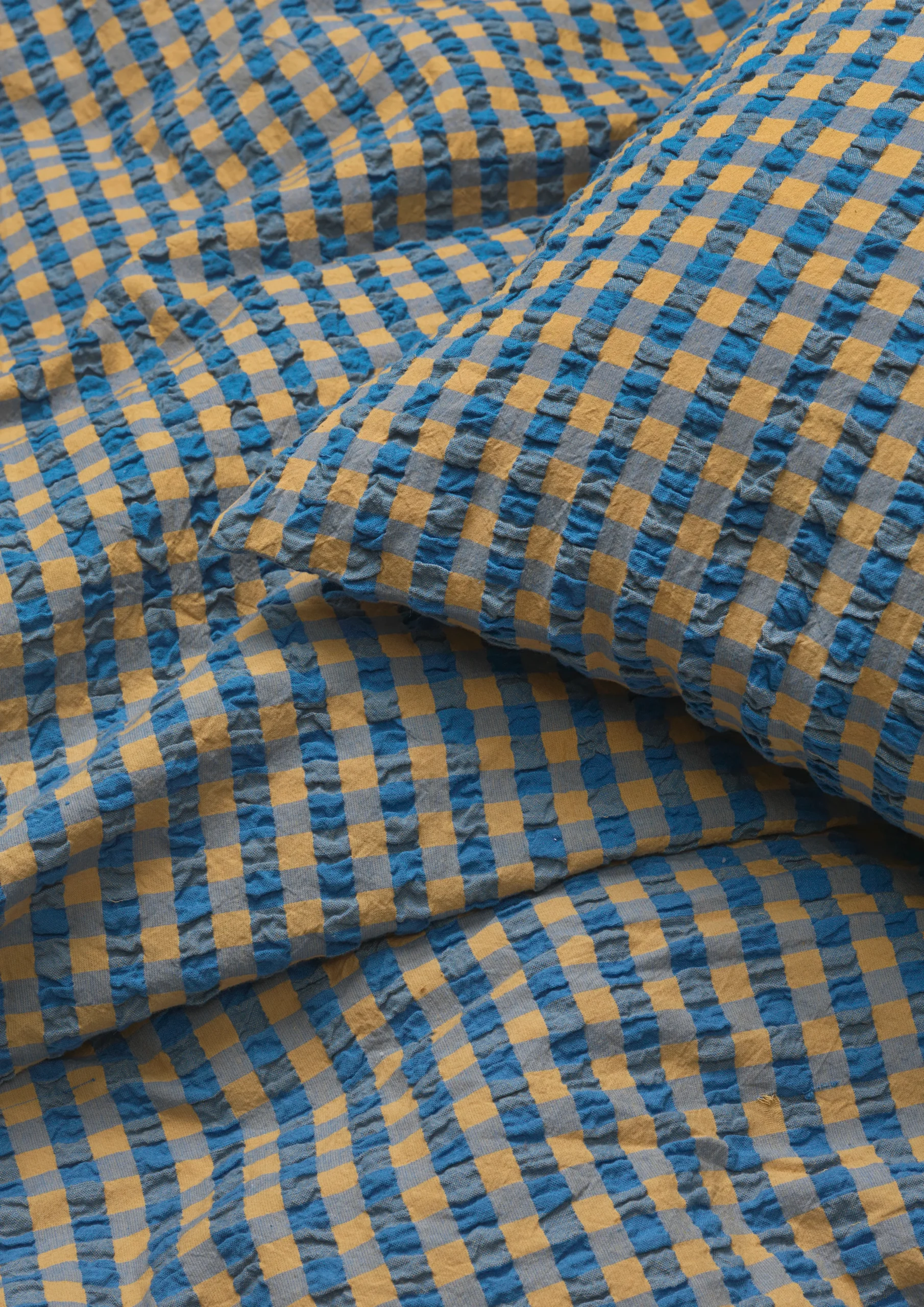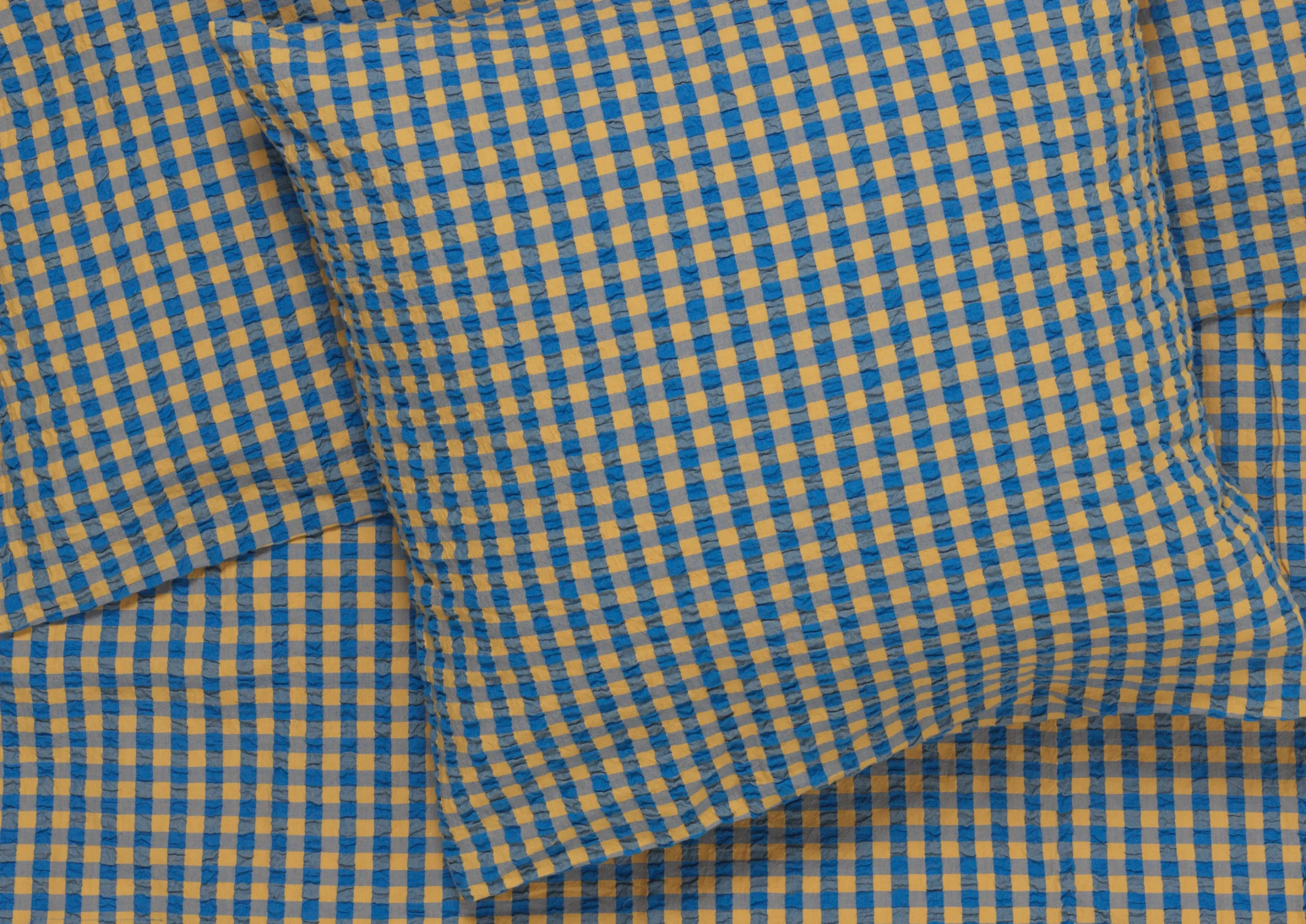 Det nye rutete Bæku0026Bølge sengesettet kommer i fargen blå/oker. Blå har en varm og avdempet friskhet over seg, mens oker gir en dybde og ro som minner om en gåtur ved skog og strand på en vakker høstdag. Materialet er 100 % økologisk bomull, som både er OEKO-TEX®-merket og GOTS-sertifisert – og så er det i tillegg strykefritt. Putevaret har konvoluttlukking, mens dynetrekket lukkes med knapper. Har du flere forskjellige sengesett fra JUNA, kan du mikse og matche de forskjellige fargene og mønstrene på kryss og tvers og skape din helt egne stil på soverommet.