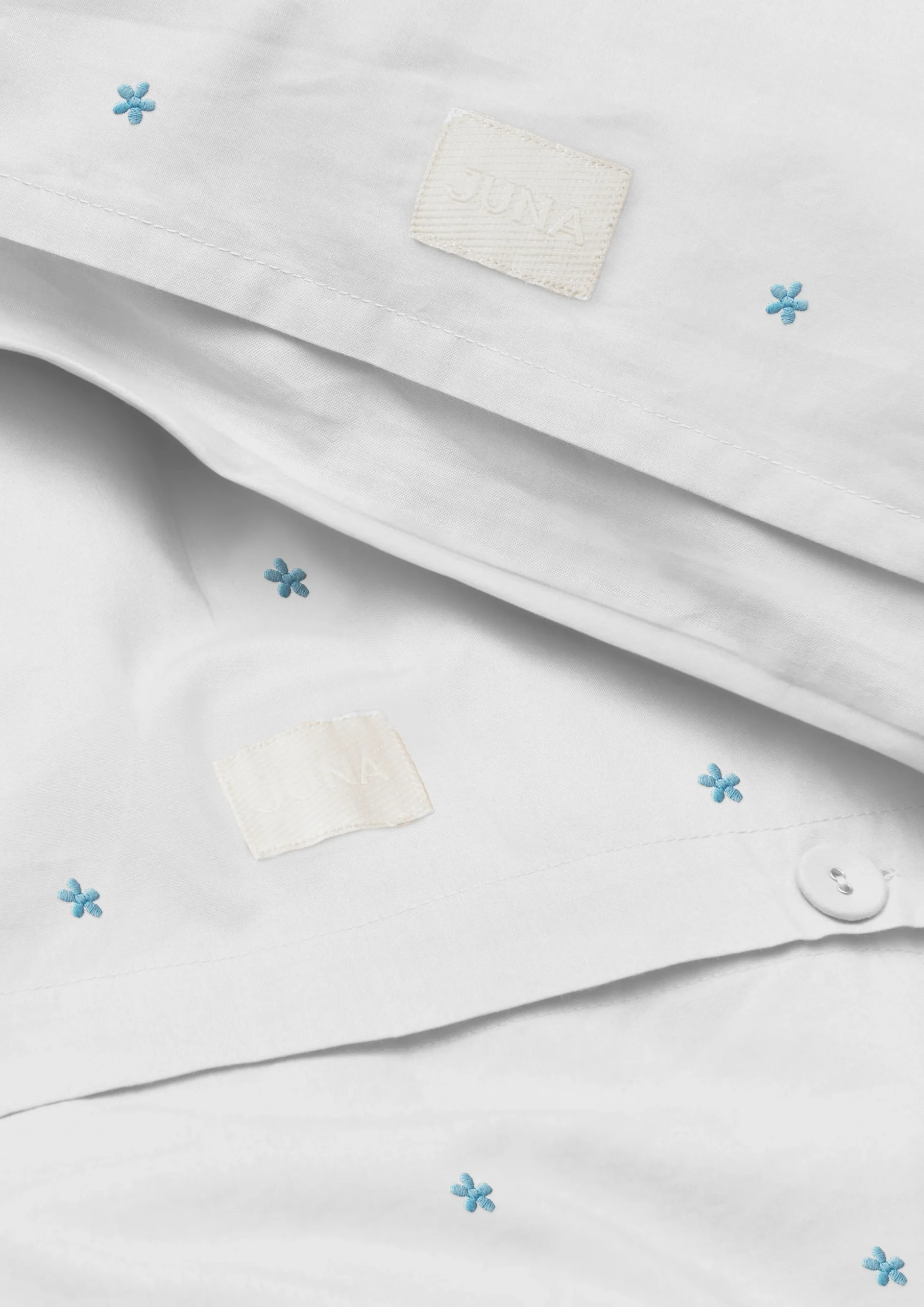 JUNA Daisy Sengetøy 140×220 cm hvit/lys blå DK