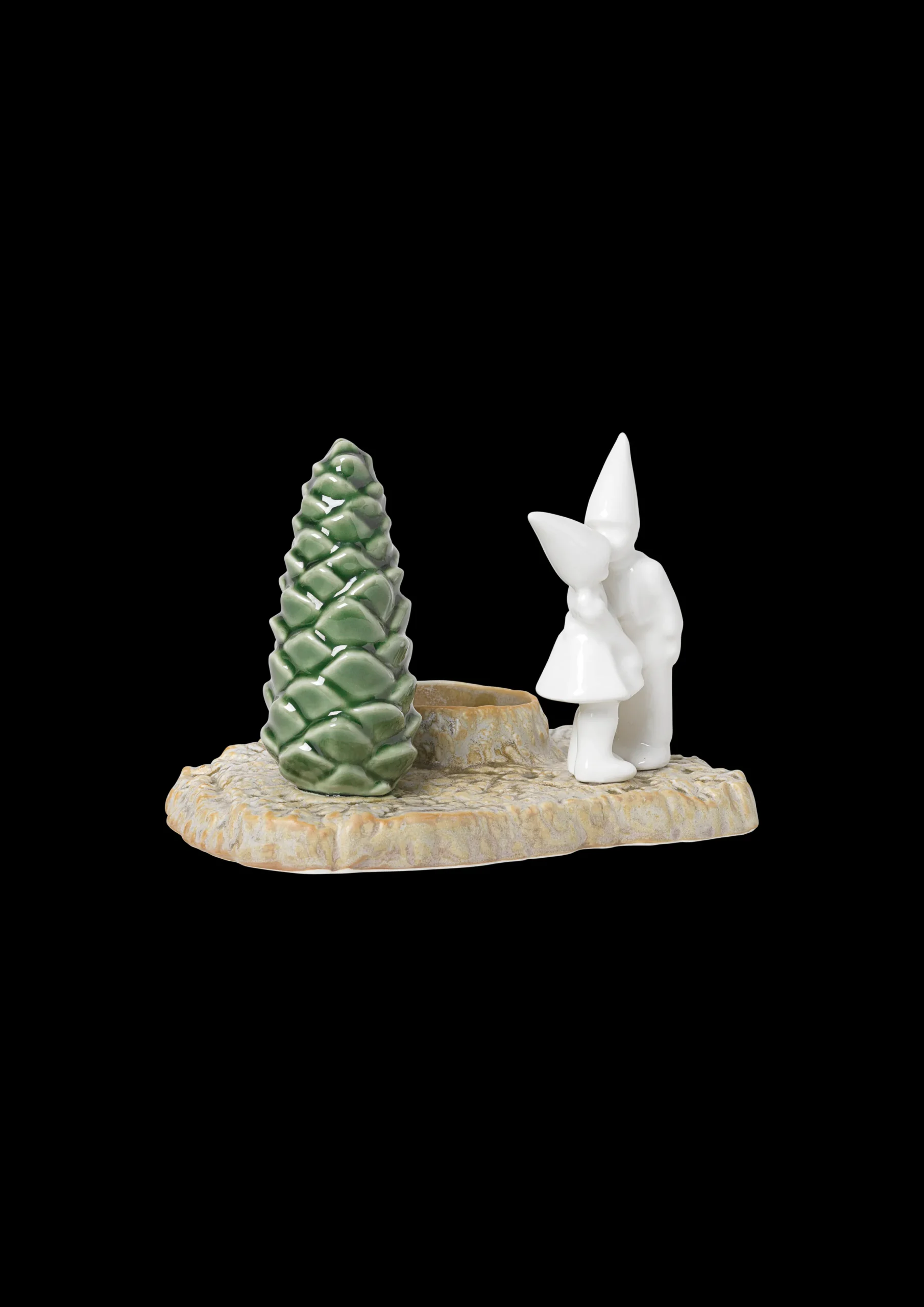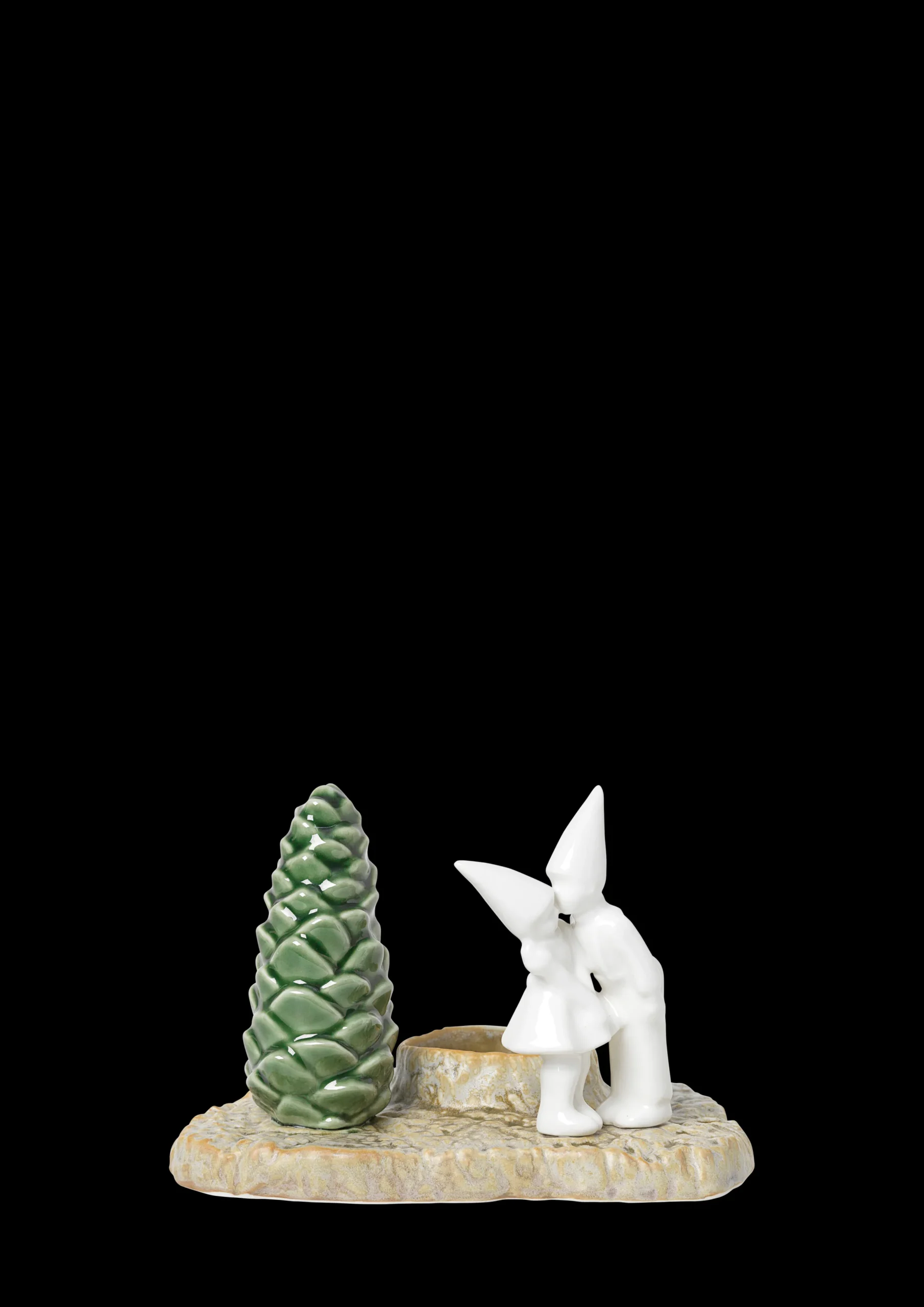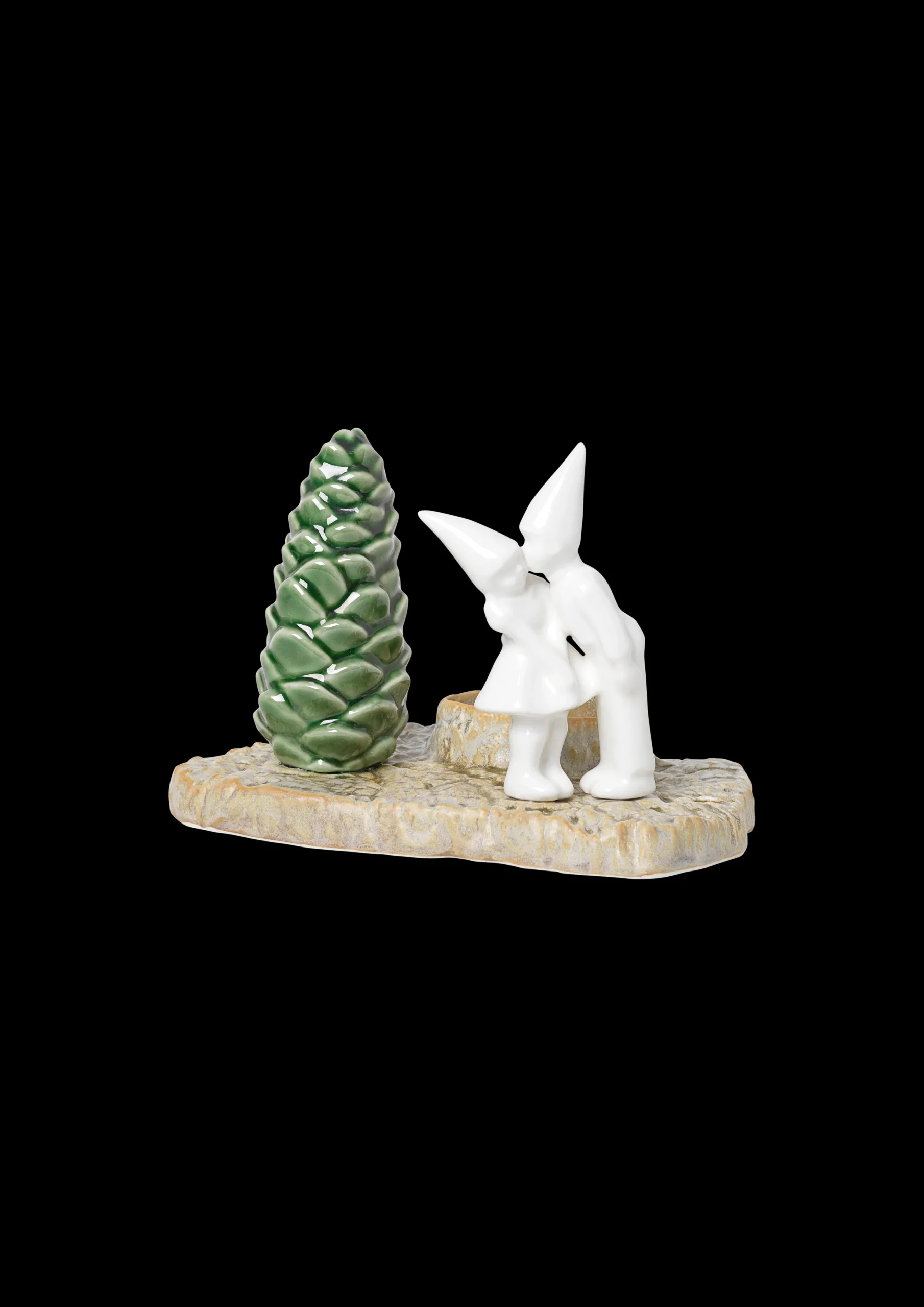 De dekorative porselensfigurene i Christmas Tales kolleksjonen er fulle av julemagi. De er inspirert av gamle julefortellinger, og hver av dem forteller en historie med elementer fra den vakre nordiske naturen. Formerne er skapt ved avstøpninger fra naturens overflater og trestubber, hvilket igjen skaper en fin kontrast til de stilistiske figurene. Det søte lille paret minner oss om å gi en gave fra hjertet, den krever ikke noen innpakning: et kyss. La dem spre kjærlighet i lyset av et adventslys.