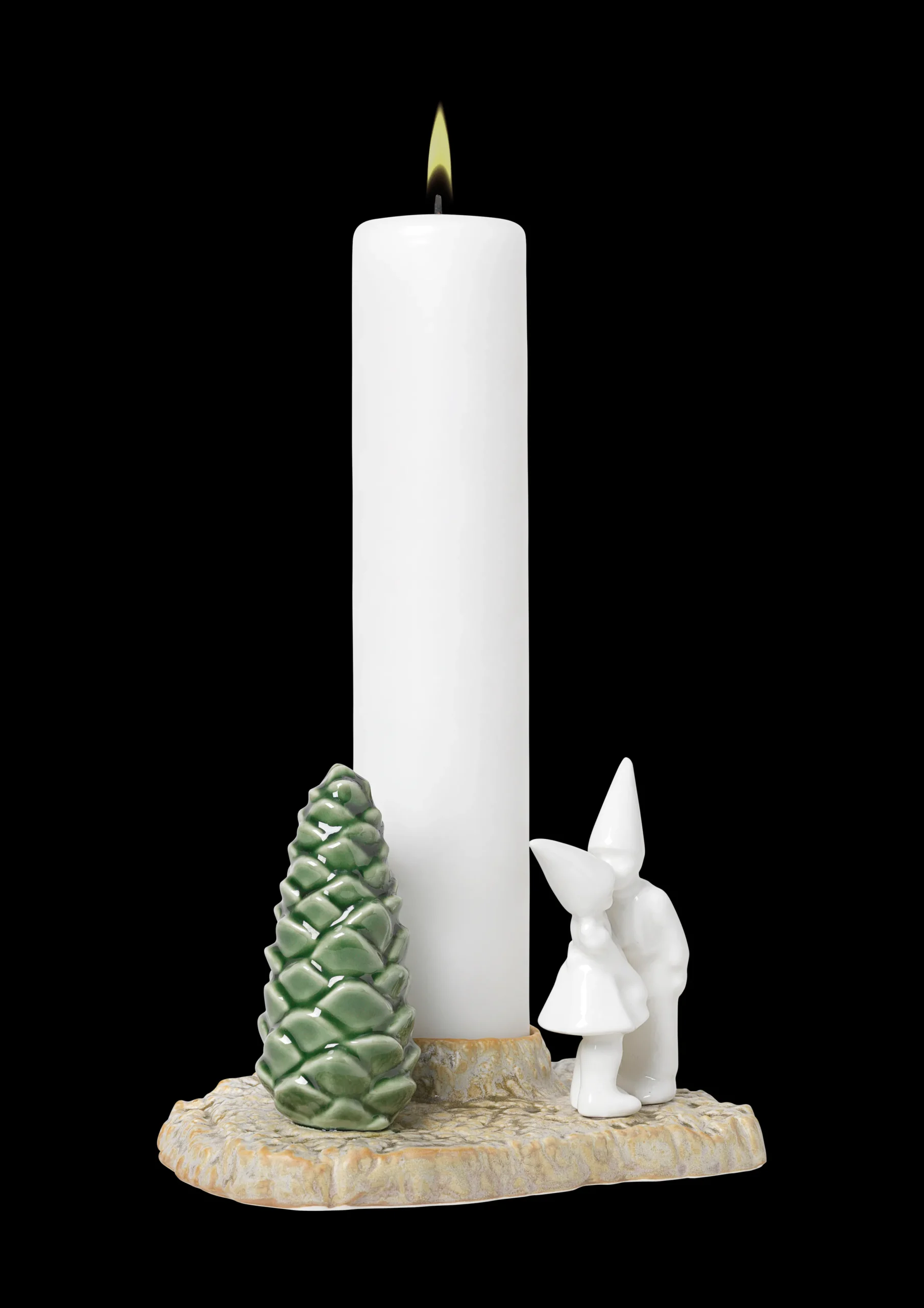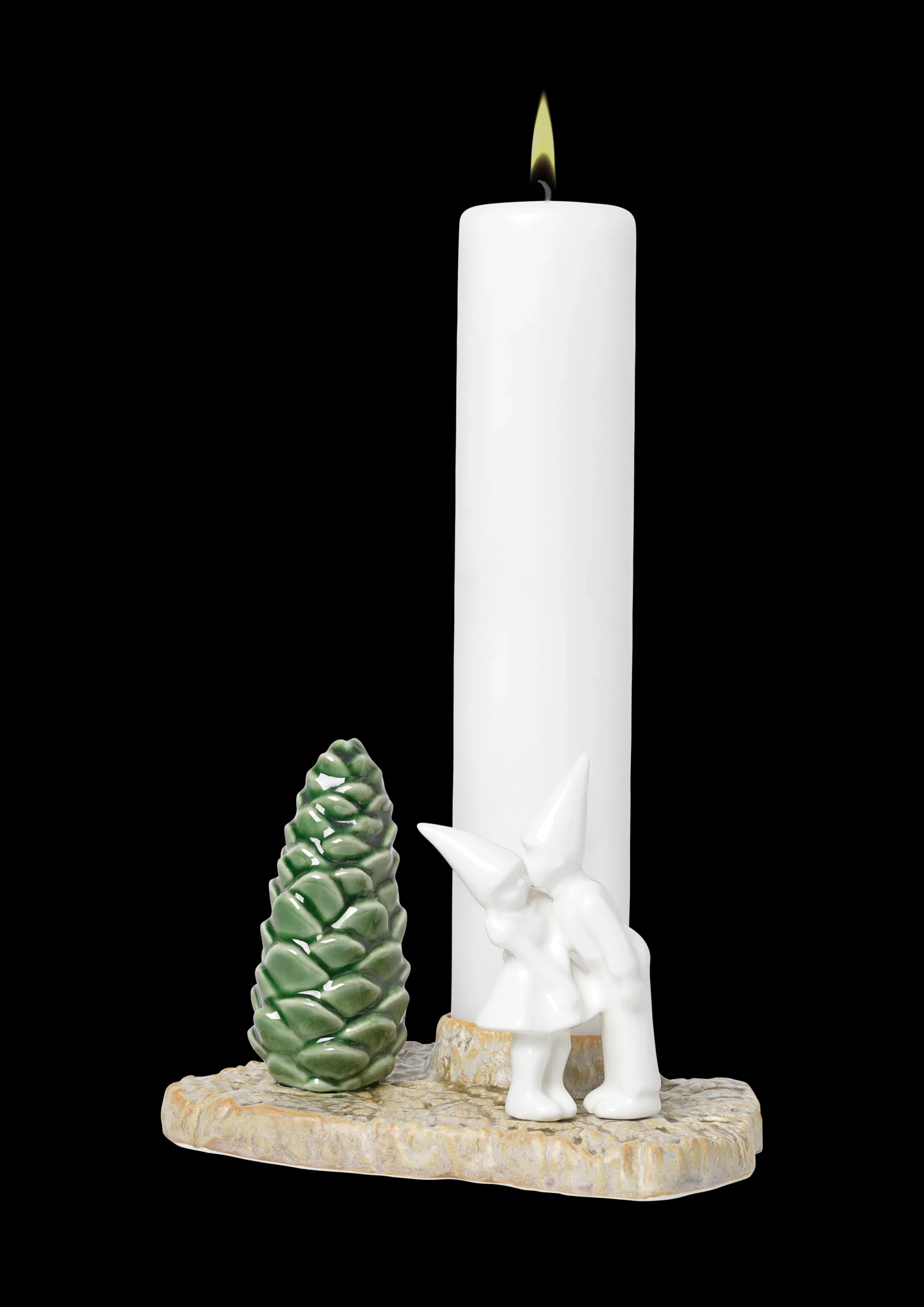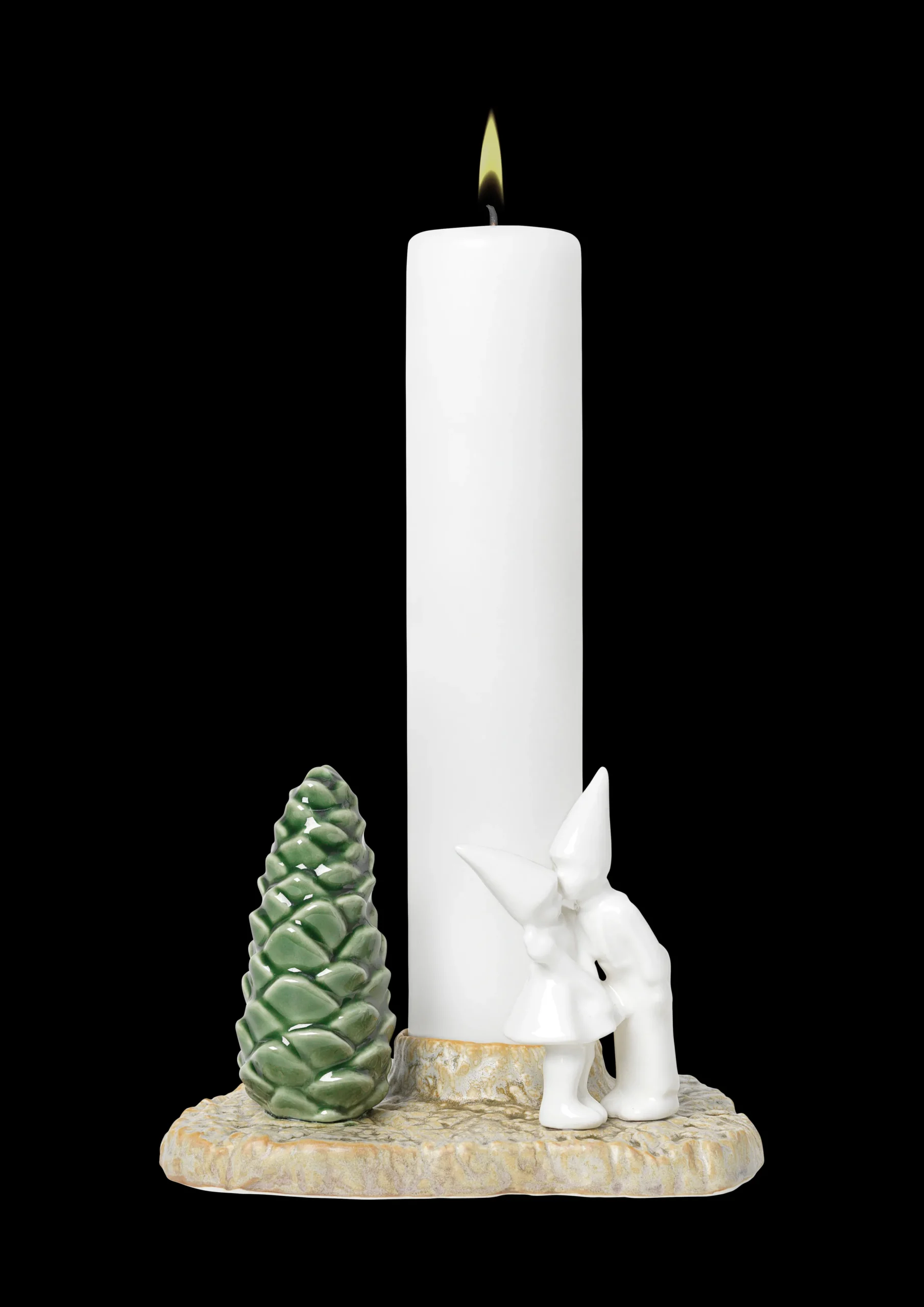 De dekorative porselensfigurene i Christmas Tales kolleksjonen er fulle av julemagi. De er inspirert av gamle julefortellinger, og hver av dem forteller en historie med elementer fra den vakre nordiske naturen. Formerne er skapt ved avstøpninger fra naturens overflater og trestubber, hvilket igjen skaper en fin kontrast til de stilistiske figurene. Det søte lille paret minner oss om å gi en gave fra hjertet, den krever ikke noen innpakning: et kyss. La dem spre kjærlighet i lyset av et adventslys.