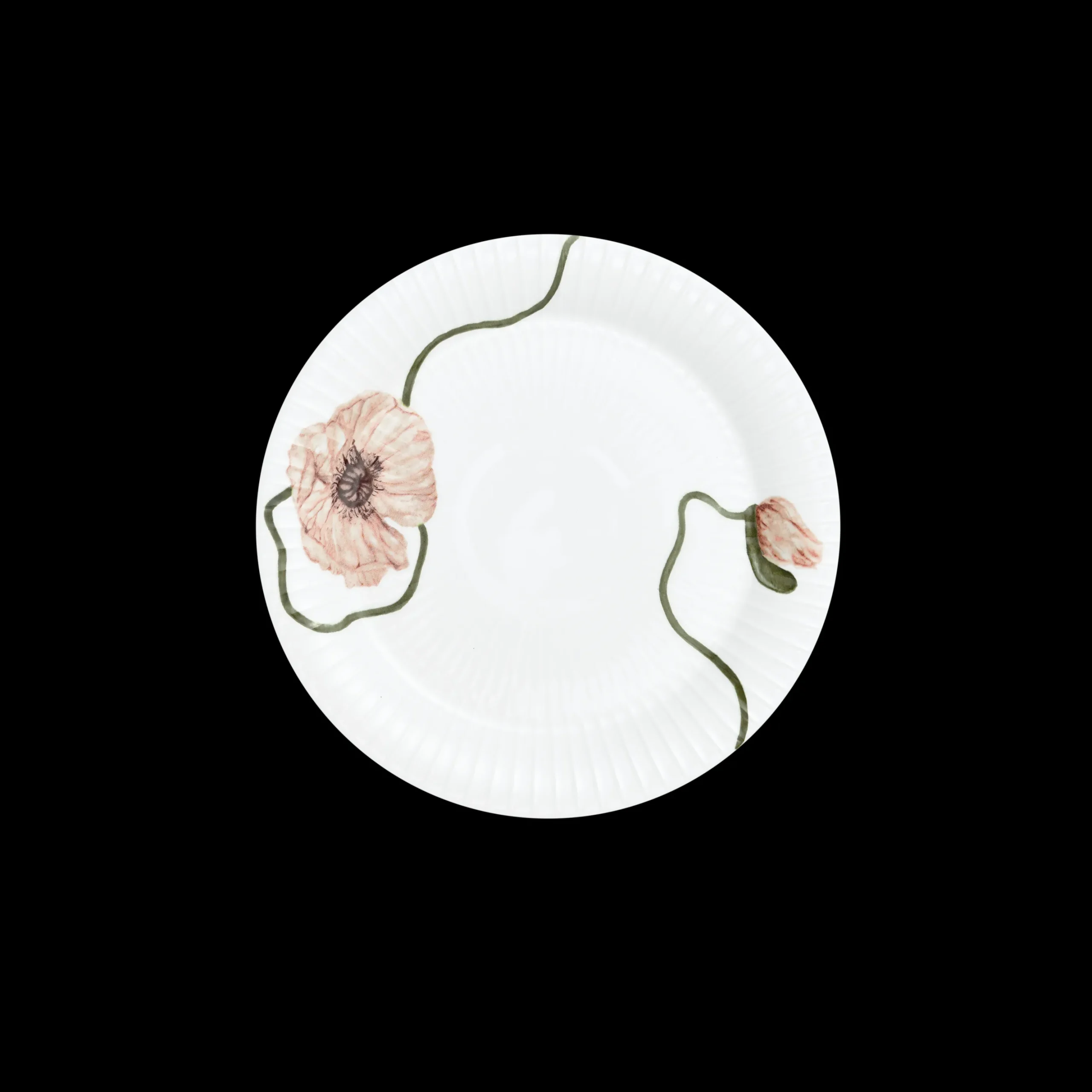Den fine lunsjtallerkenen fra Hammershøi Poppy er skapt for å dekke et stilfullt bord med et kreativt, personlig preg. De vakre akvarelltegningene av valmueblomster er håndmalt av designeren Rikke Jacobsen og overført til porselenet. Serviset har ikke noe «opp» eller «ned», så du kan variere bordets uttrykk fra gang til gang. Kombiner gjerne lunsjtallerkenen med Hammershøis klassiske hvite servise eller glasserie og skap et uformelt bord med sans for detaljer. Hammershøi Poppy finnes også som middagstallerken, kaketallerken, dyp tallerken, skål og krus. Hammershøi Poppy-serviset har 2 års bruddgaranti.