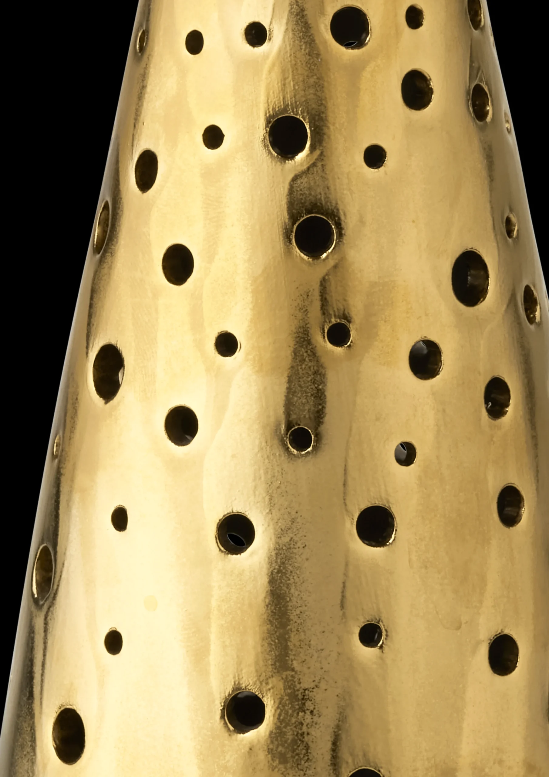 Denne julen har en ny farge i sateng-gull funnet vei til Kählers Nobili-serie av kjegleformede telysholdere og kremmerhus. Den klassiske julefargen gir serien et varmt og koselig preg. Telysholderne kommer i tre størrelser, mens kremmerhusene i serien kommer i to størrelser med hank i messing-look. Gjennom de håndskårne hullene kommer lyset til live som silhuetter på hjemmets mange flater. Det er designerne Mette Bache og Barbara Bendix Becker som har formgitt serien ut fra et ønske om å bringe et lekende uttrykk til desembers innredning med håndlagede juletradisjoner i keramikk. Og i designet lekes det med den blanke og taktile glasuren som får motspill av den rå, uglaserte keramikken som preger både holderne og opphenget.