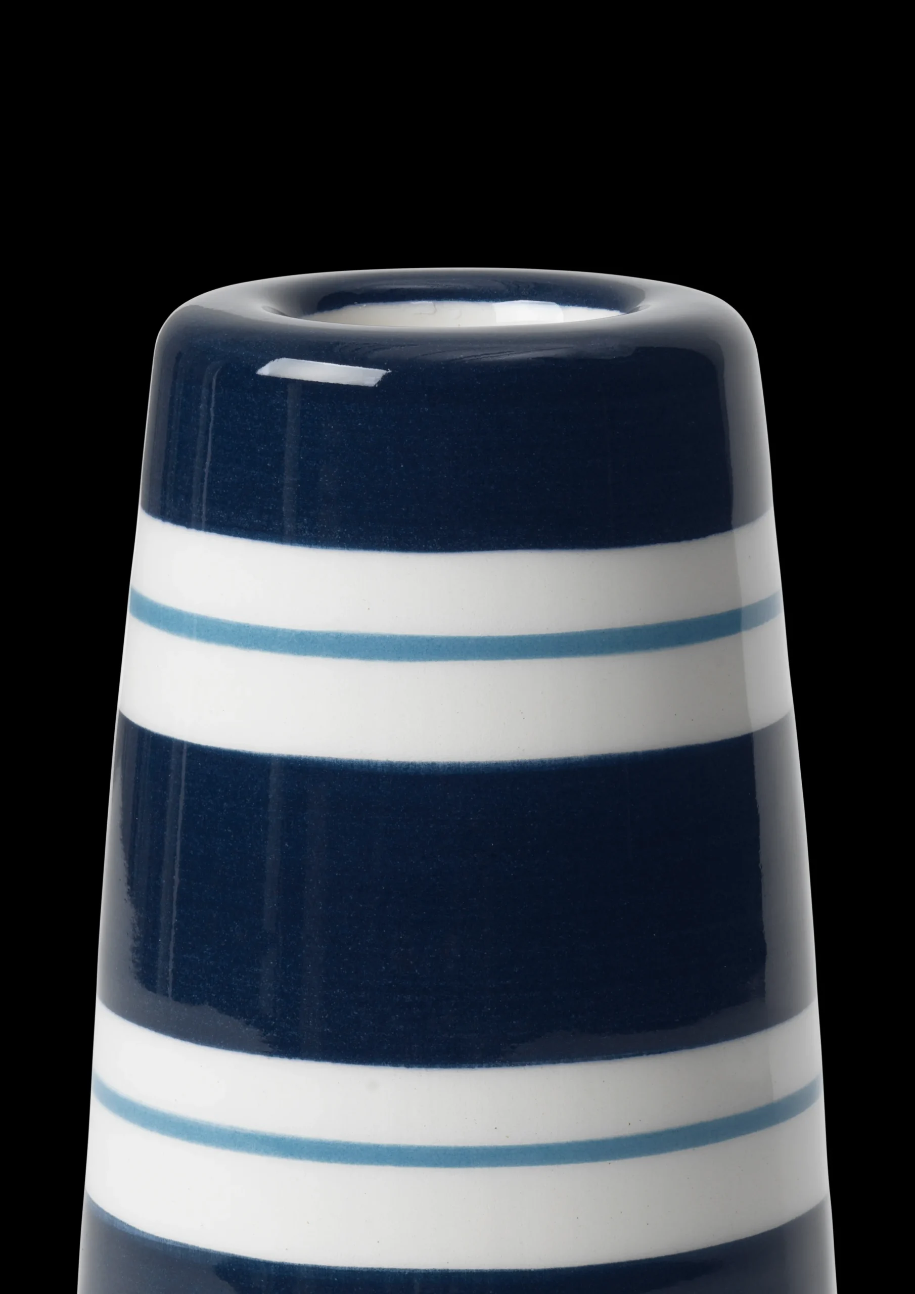 Du har kanskje allerede invitert naturen innenfor med en bukett blomster eller en potteplante som står vakkert og stilfullt plassert i en vase eller en blomsterpotte fra Omaggio Nuovo-serien? Med introduksjonen av to Omaggio Nuovo-lysestaker i to størrelser og to fargekombinasjoner gir Kähler deg nå enda flere muligheter for å kombinere kjærligheten til keramikk med kjærligheten til blomster, planter og levende lys. Den lille lysestaken på 12 cm har en mørkeblå bunnfarge og smale, lyseblå striper, mens den litt større kommer i oker og måler 16 cm. Begge står vakkert til med dybde og liv i de håndmalte stripene og glasuren, så de får «stripene i stripen» som kjennetegner Omaggio Nuovo og trekker tråder tilbake til Kählers stolte håndverkstradisjoner.