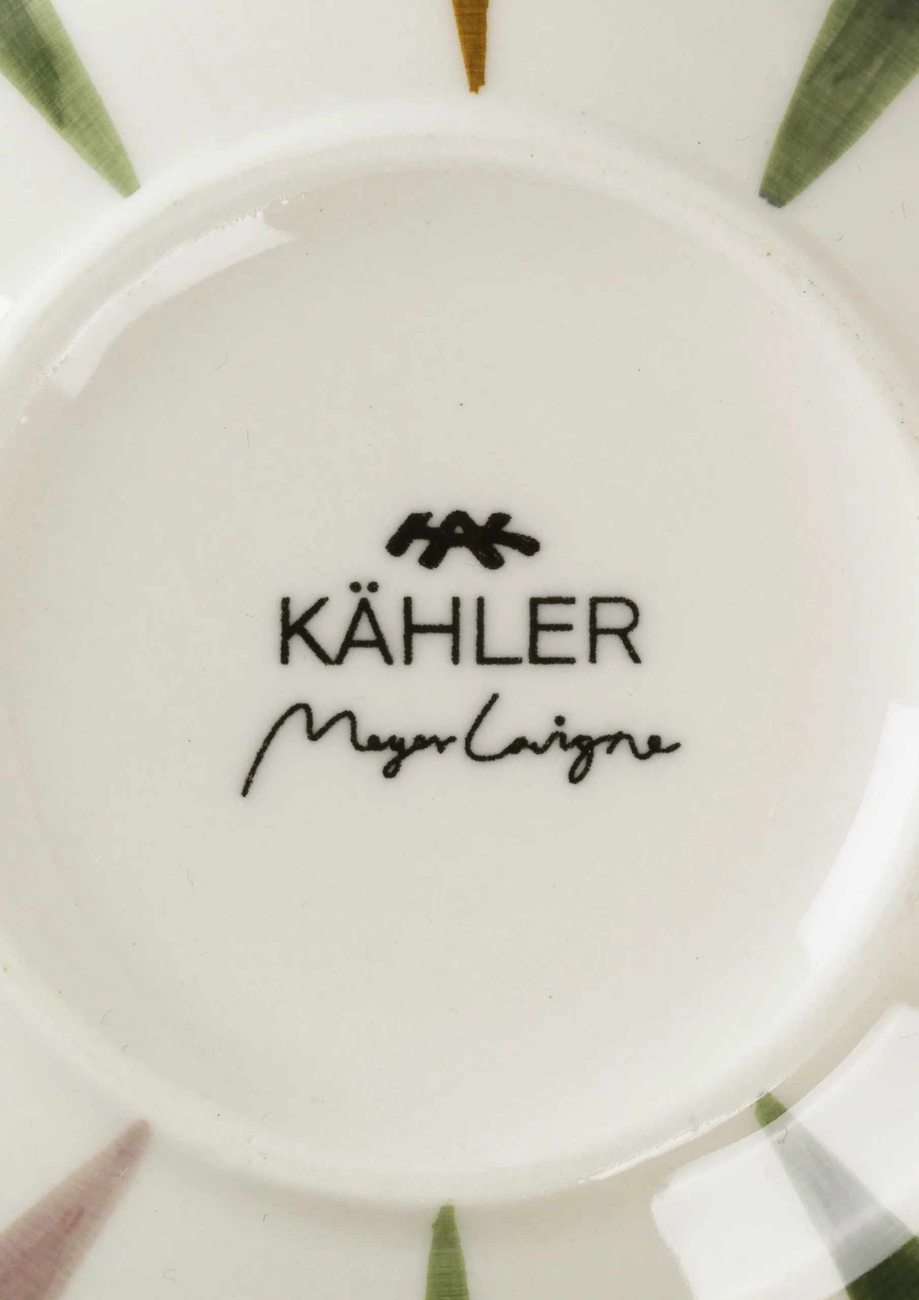 MeyerLavigne har laget to nye vaser for Kähler, med naturen som inspirasjon og en unik traktlignende blomsterform. Vasen har en integrert keramikkplate med hull, inspirert av lotusplantens frøkapsel som gjør det mulig å arrangere blomstene som du ønsker. Vasen kan selvfølgelig også brukes uten plate til en vanlig bundet bukett. Vasen er laget av steintøy med håndmalt dekor. Vasenes uttrykk har liv, dynamikk og autentisitet. Stripene er dempede toner av mosegrønn, terrakotta og lilla som vakkert komplementerer hverandre. Dekoren ligner på blomstenes støvbærere hvor stripene beveger seg oppover, og gir vasen liv og bevegelse. Design MeyerLavigne
