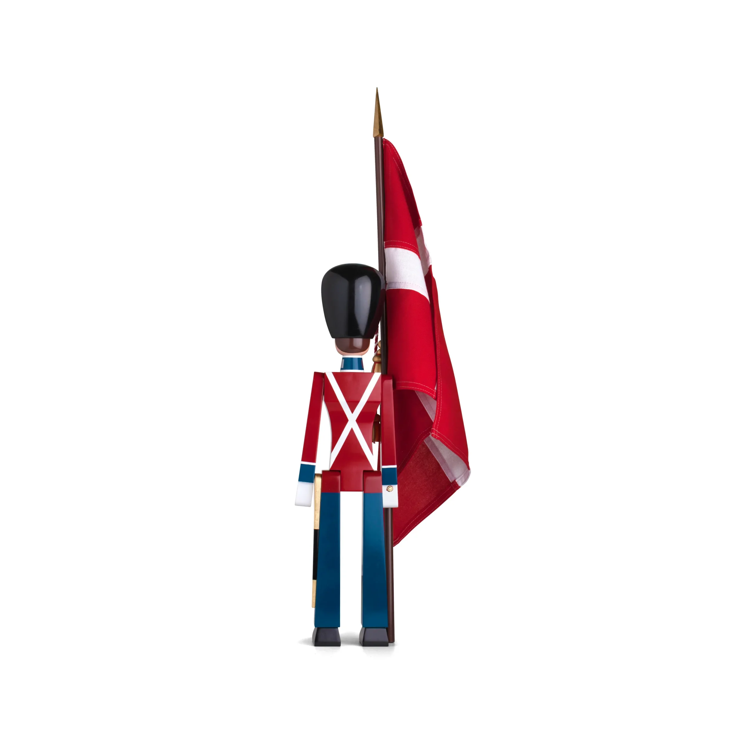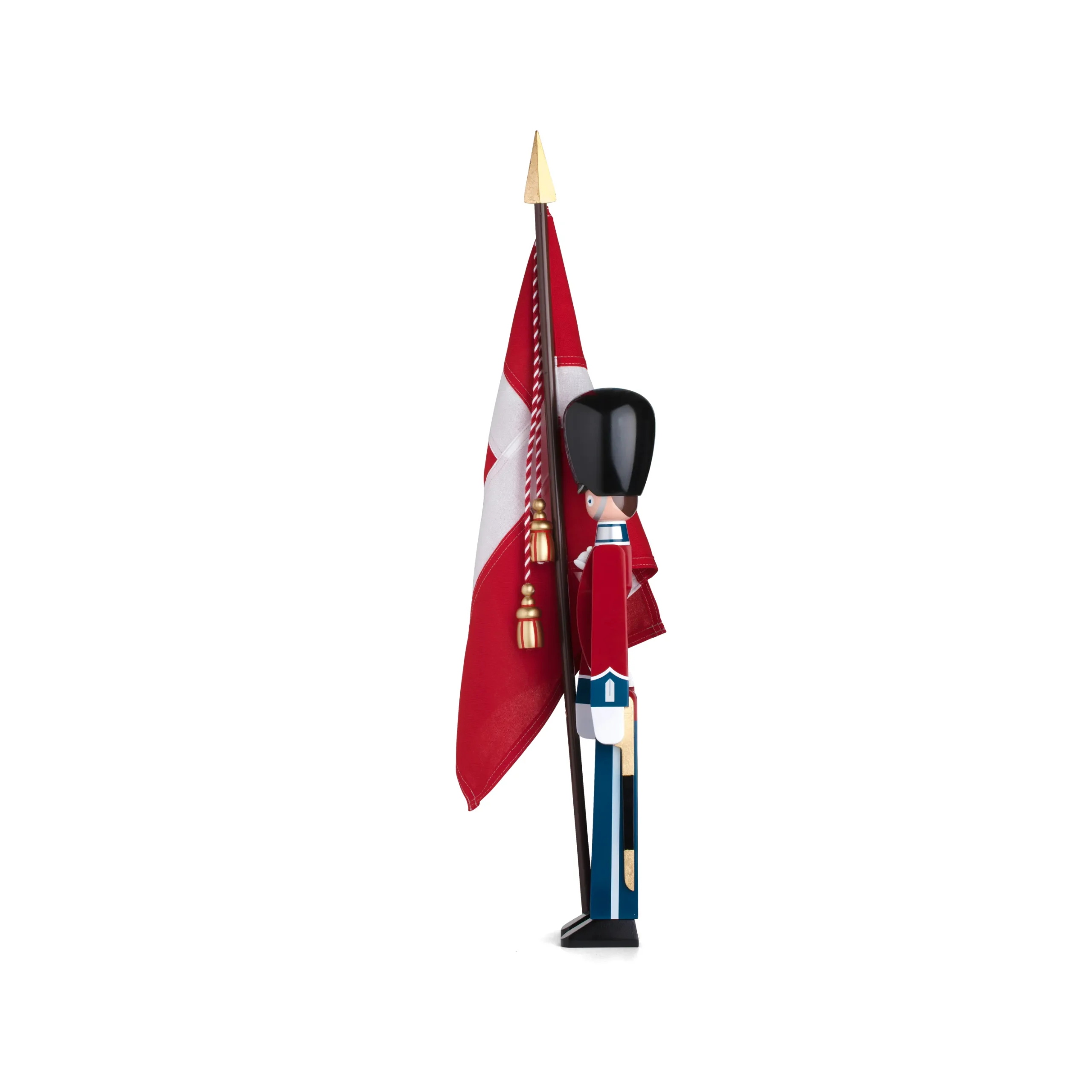 Flaggbæreren i mellomstor størrelse fra Kay Bojesen er 50 cm høy og altså halvparten så stor som den velkjente, høye gardisten. De håndmalte gardistene i bøk ble opprinnelig skapt av Kay Bojesen i 1942 med inspirasjon fra de virkelige gardistene på Amalienborg slottsplass, som er et av Danmarks aller største nasjonalsymboler. Flaggbærerens fane er laget i slitesterk spunnet polyester.