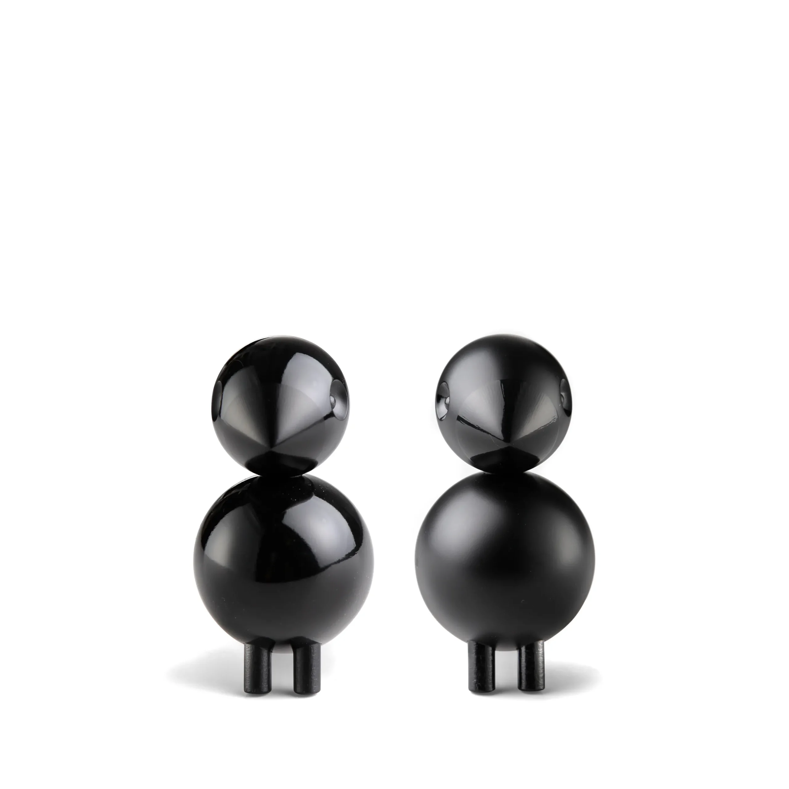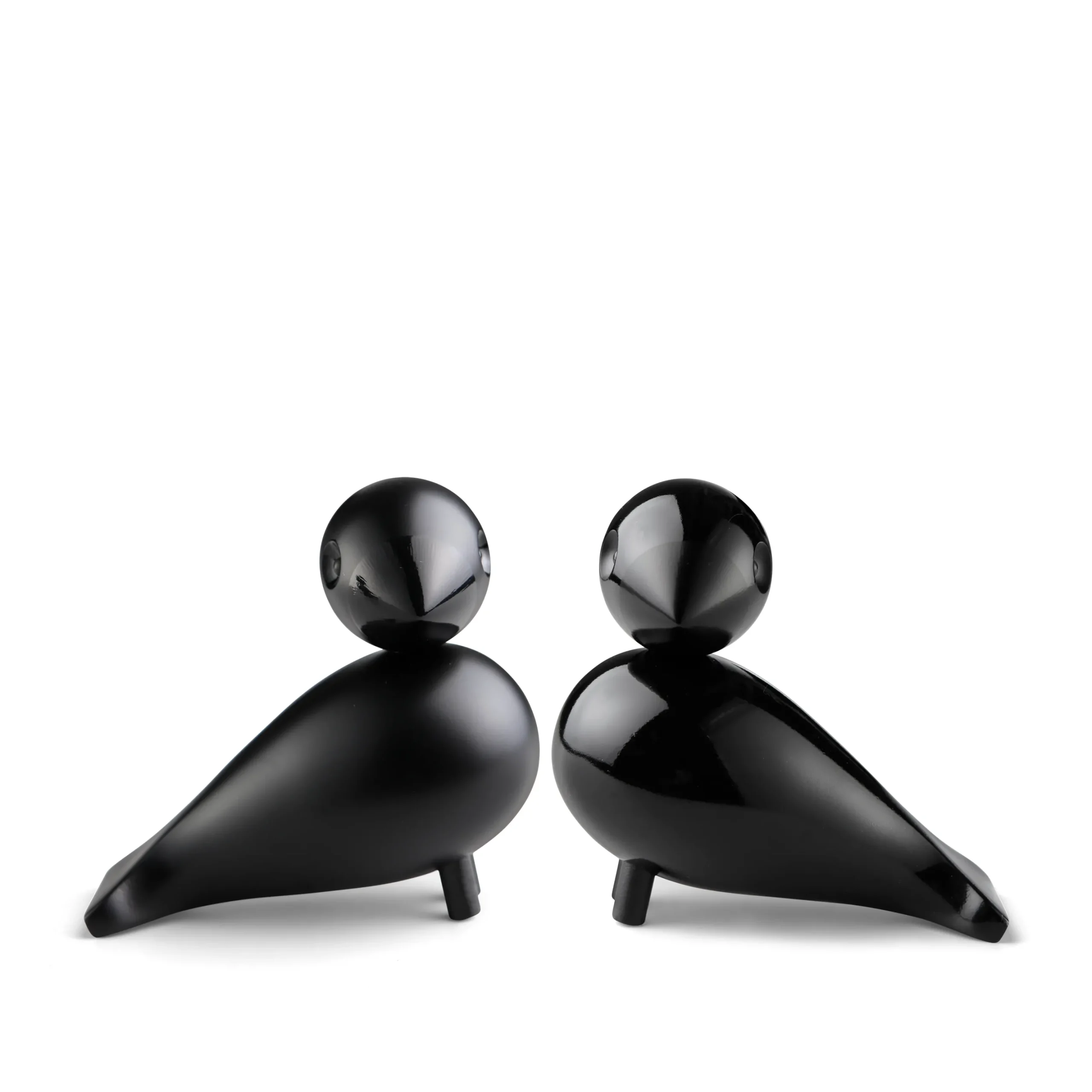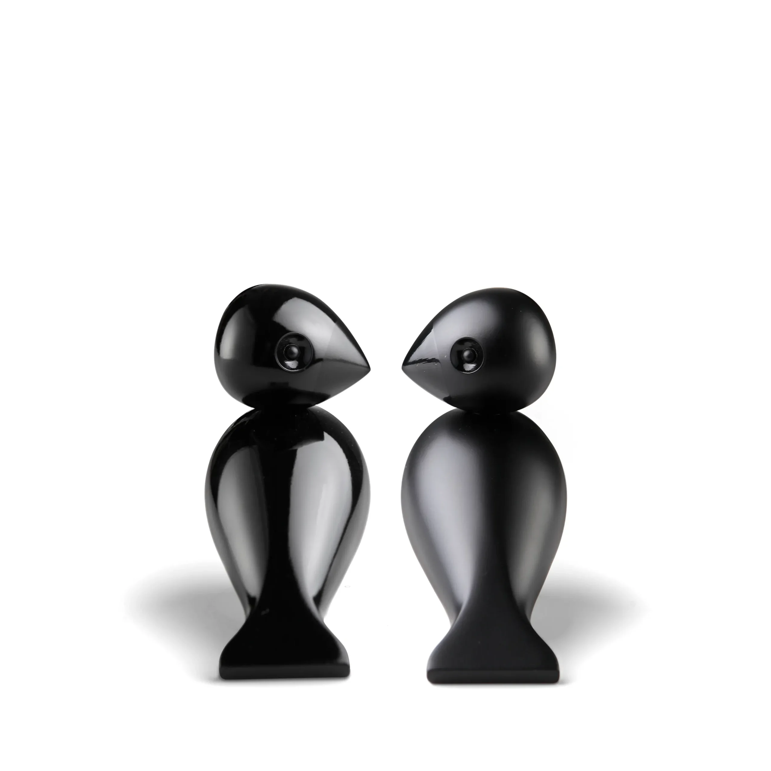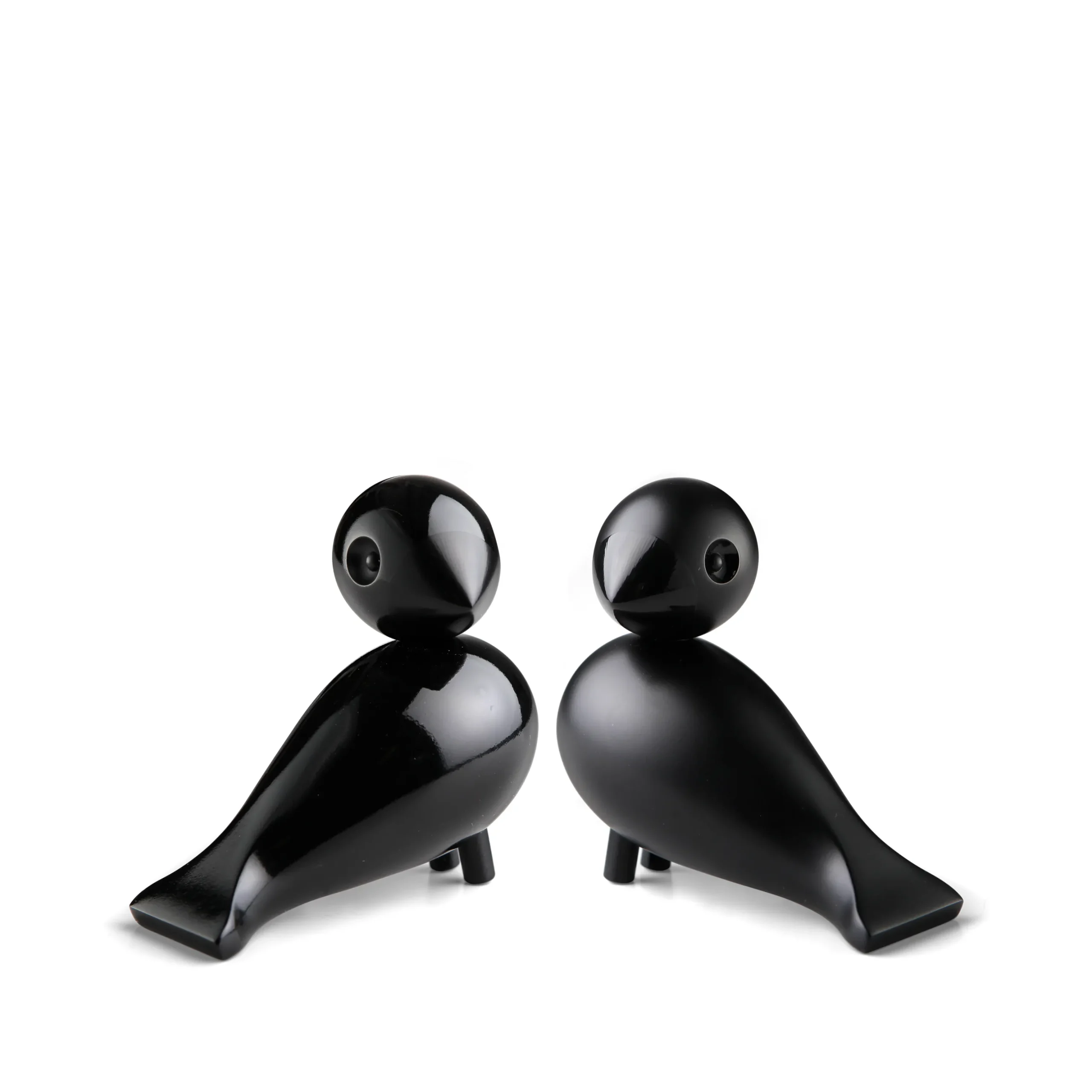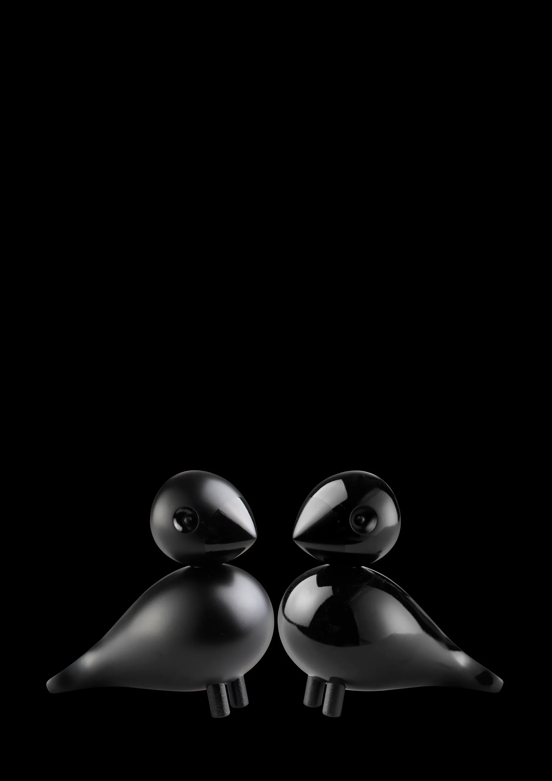 De unike og tidløse turtelduene i sort er inspirert av den sorte sangfuglen Ravn fra Kay Bojesen. Turtelduene er malt i sort. Den sorte fargen gjør turtelduene til et vakkert element i innredningen på en fin og veldig diskré måte. nTurtelduene er utformet i bøk, men de er malt i et blankt og matt materiale. Denne diversiteten skaper et spesielt uttrykk. I en innredning vil turtelduene signalisere romantikk, ulikhet og samhørighet. Selv om turtelduene har forskjellig utseende, er nærvær og kjærlighet tydelig. nDe søte turtelduene er perfekte som en betydningsfull bryllupsgave. Eller til en person som setter pris på vakker design av høy kvalitet.