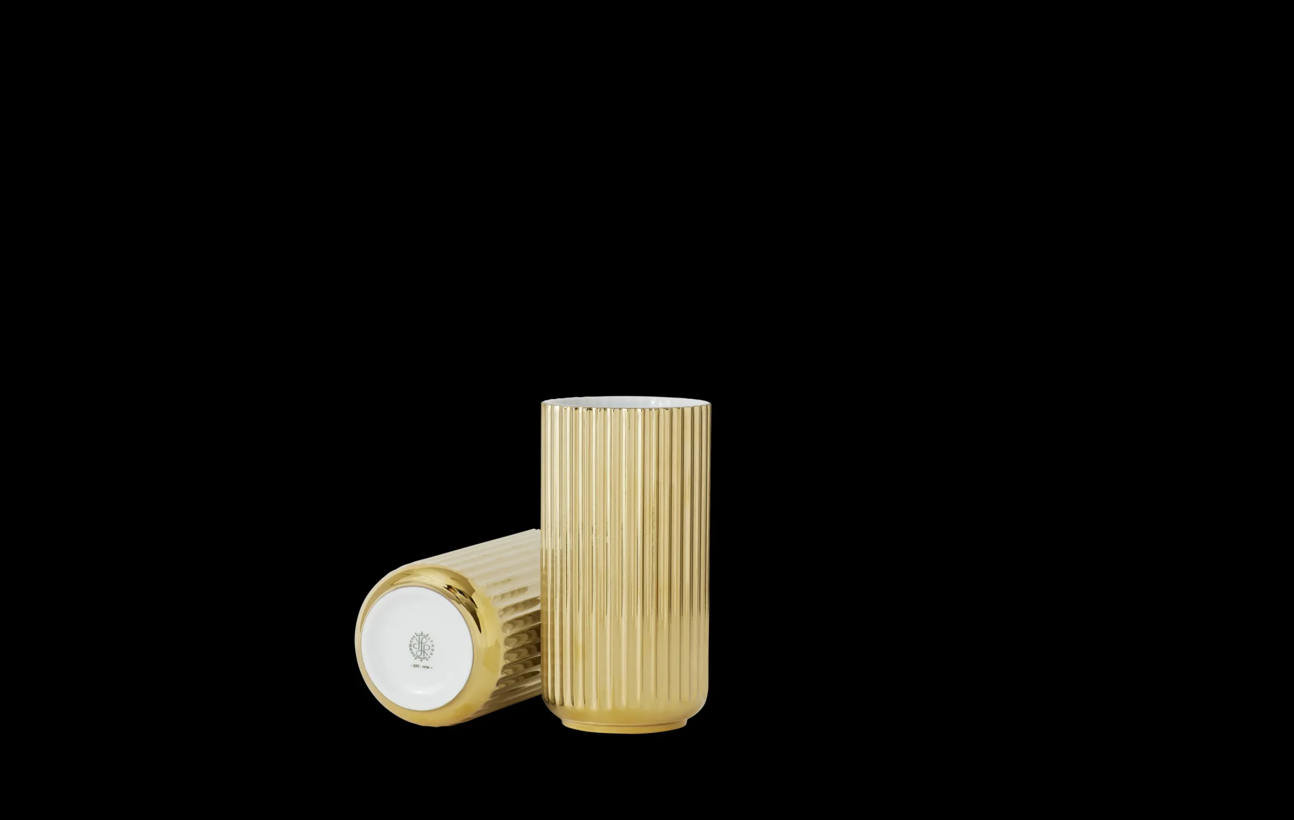 Den alltid populære Lyngby-vasen har blitt en ekte designklassiker. De fleste forbinder vasen med minimalisme og funksjonell design. Dette er Lyngby-vasen i 20 cm gullfarget porselen. Lyngby-vasen fåes i et bredt utvalg av farger og størrelser.