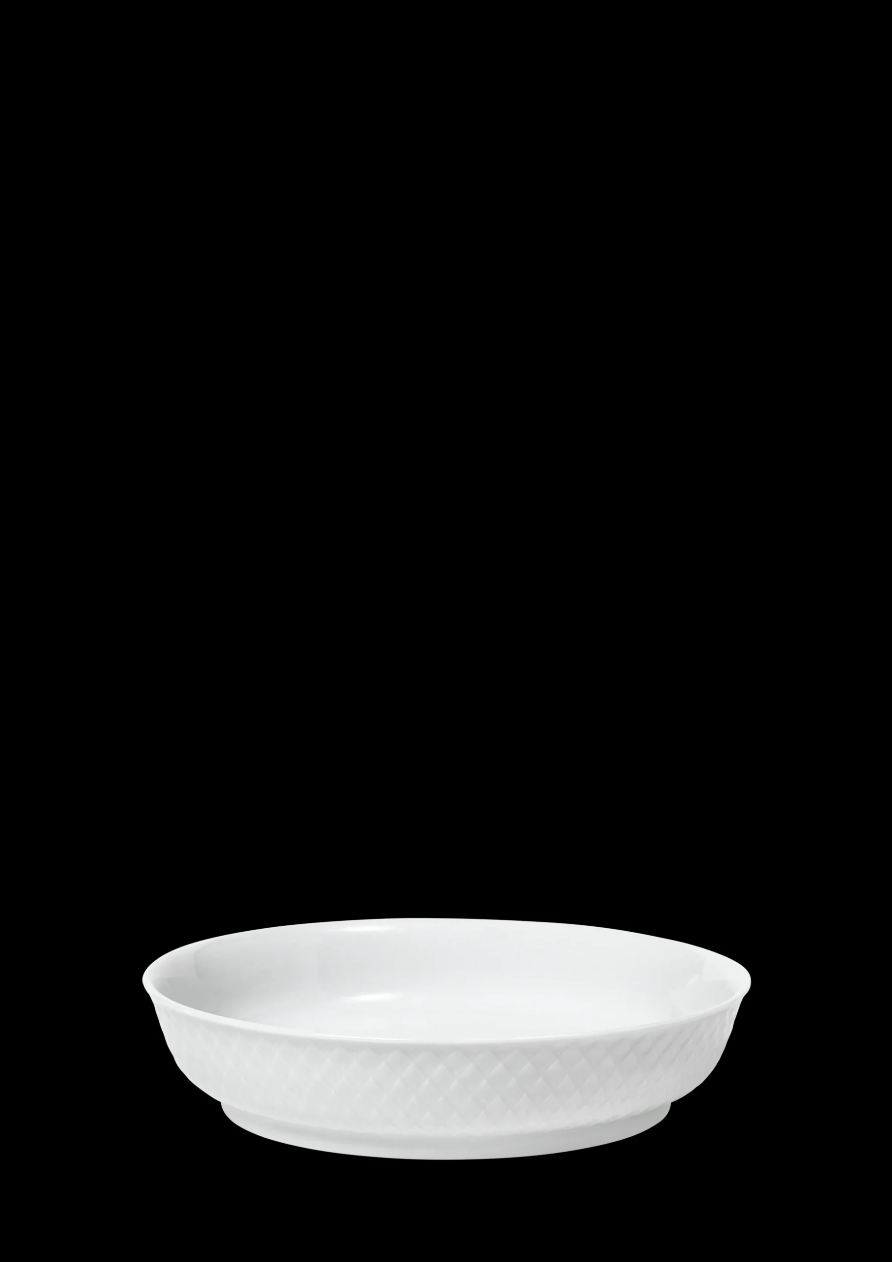 En ny desserttallerken med høye kanter og en diameter på 16 cm er nå tilføyd til den klassiske, hvite Rhombe-serien fra Lyngby Porcelæn. Formen og størrelsen gir deg et utall muligheter for servering av desserter, supper, salater og langkokte retter på middagsbordet eller til yoghurt, grøt og müsli på frokostbordet. Det er noe sjarmerende ved å servere i en tallerken med høye kanter. Det innbyr til å holde rundt tallerkenen og skaper en uhøytidelig stemning. Samtidig kan du glede deg over linjene som karakteriserer Lyngby Porcelæns stilfulle design. På tallerkenens ytterside kan man både se og føle rhombe-mønsteret som trer vakkert frem gjennom den blanke glasuren. Det ikoniske mønsteret gir en behagelig, taktil opplevelse av serviset, og du både ser og merker tydelig kvaliteten av tallerkenen.