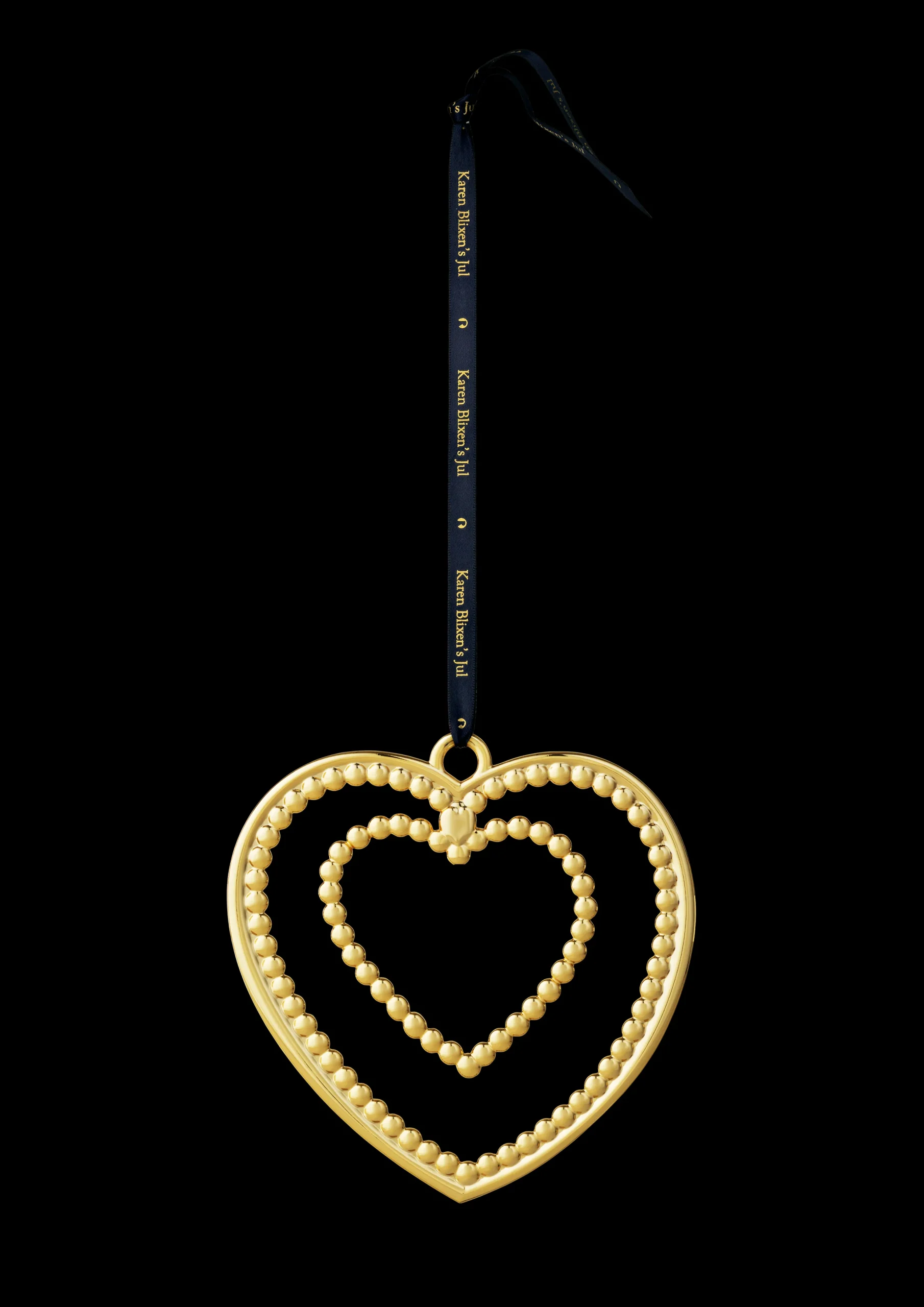 Motivene i Karen Blixens Jul er en hyllest til den tradisjonelle julen, hver pynt er nøye utformet med fine detaljer, slik at hver pynt fremstår som unik. Ballhjertet er vist her i forgylt, de fine små kulene er vakkert stilt opp som et perlekjede, en raffinert og veldig feminin ornament. Ornamentet finnes også i en sølvbelagt versjon. Produktet blir patina over tid. Vi anbefaler ikke å bruke polsk på produktet. Vi anbefaler at produktet lagres i originalemballasjen, da dette vil forlenge produktets levetid.