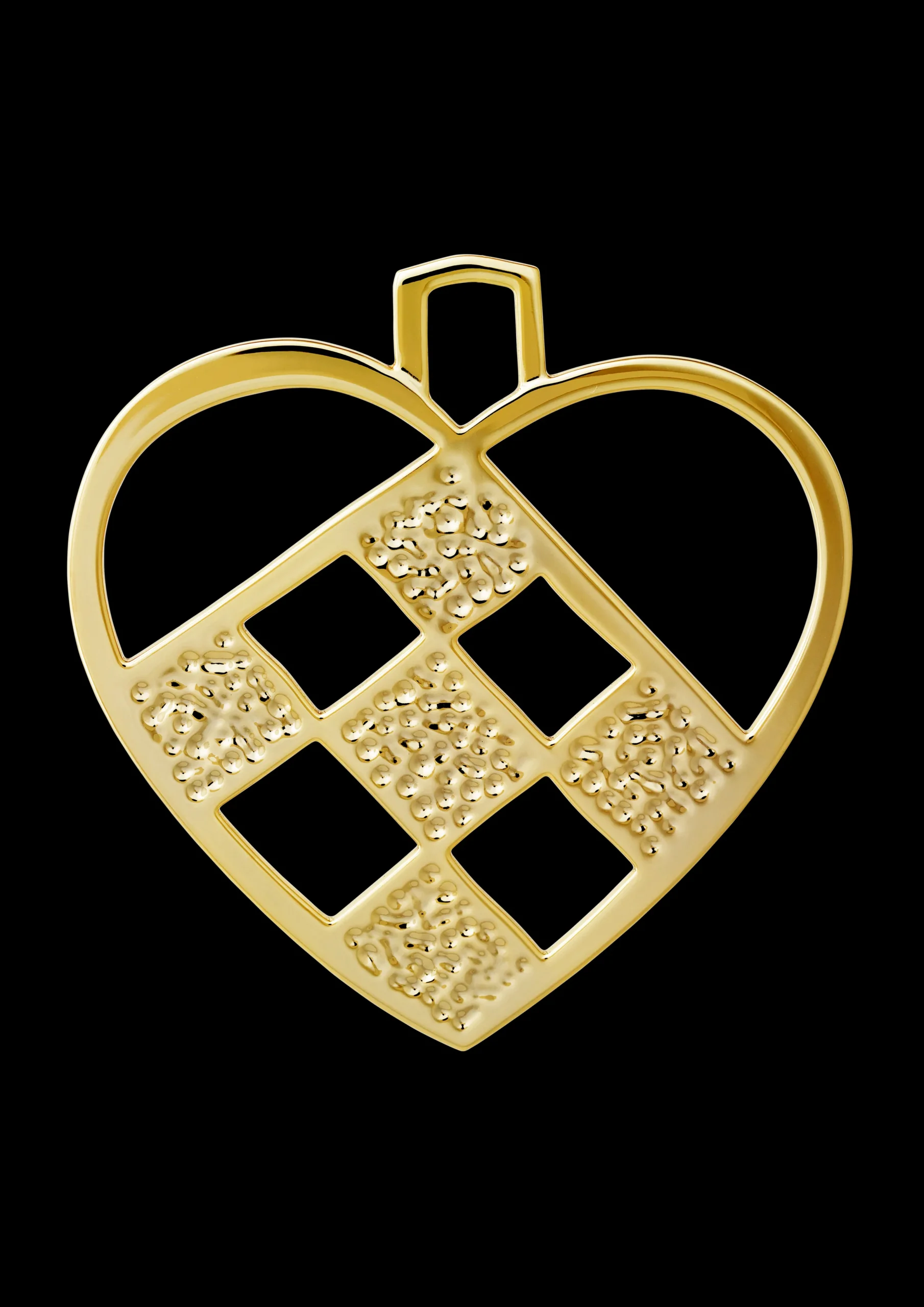 Skru opp julestemningen et hakk med Karen Blixens Jul – en fantastisk kolleksjon av julepynt fylt med historier og magi. Det fine, forgylte flettede hjertet er skapt av designeren Ole Kortzau med utgangspunkt i julens symboler og arketyper og med stor kjærlighet til den fine juletiden. Heng det vakre ornamentet på juletreet eller på enkle trollgrener. Det flettede hjertet fås også forsølvet og i en litt mindre variant på 7,5 cm. Produktet blir patina over tid. Vi anbefaler ikke å bruke polsk på produktet. Vi anbefaler at produktet lagres i originalemballasjen, da dette vil forlenge produktets levetid.