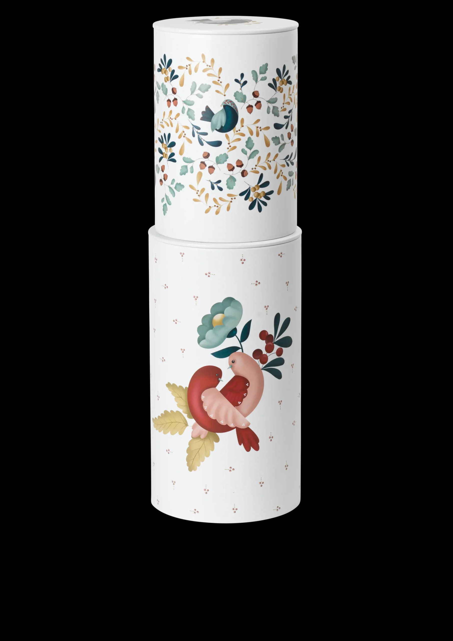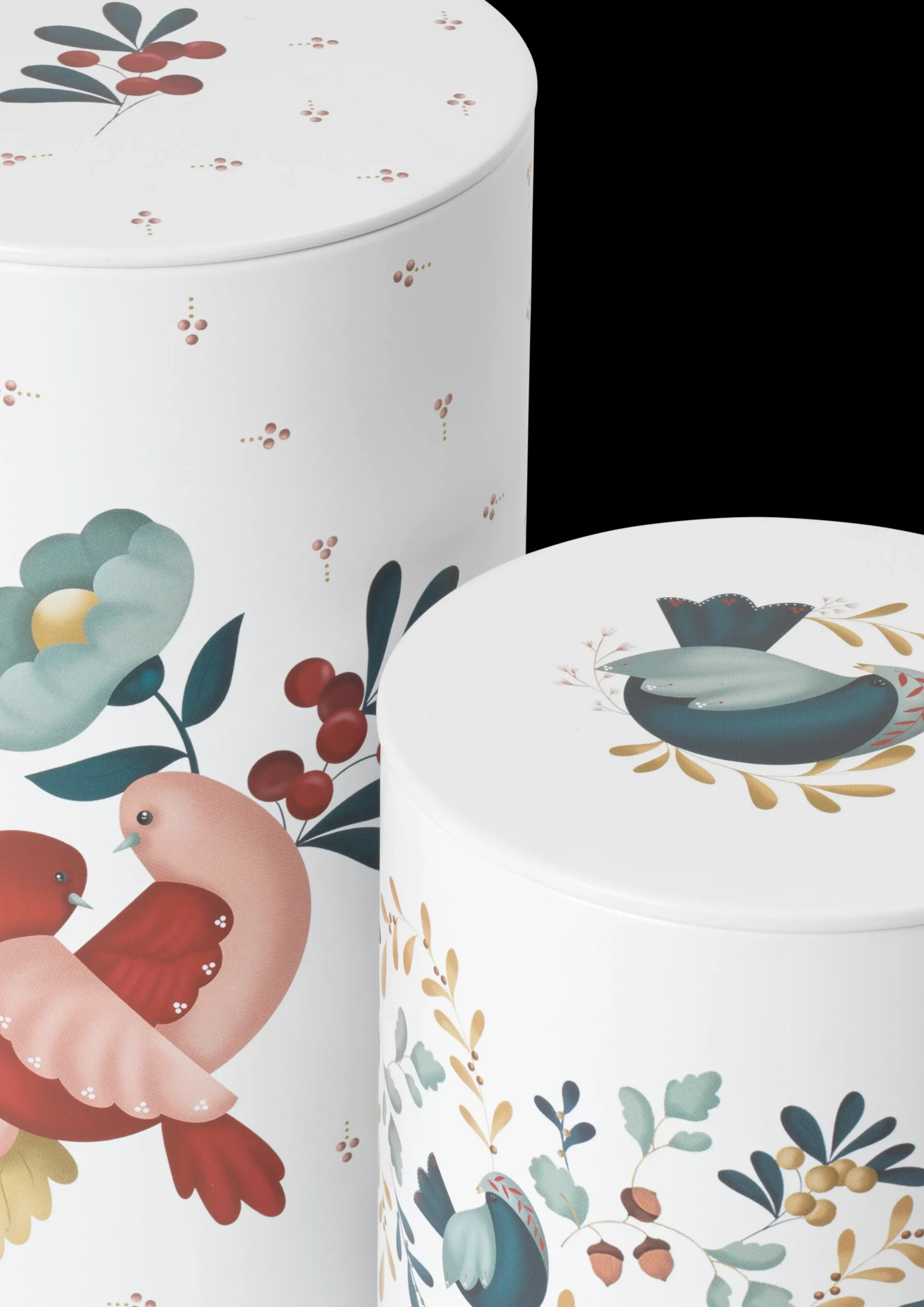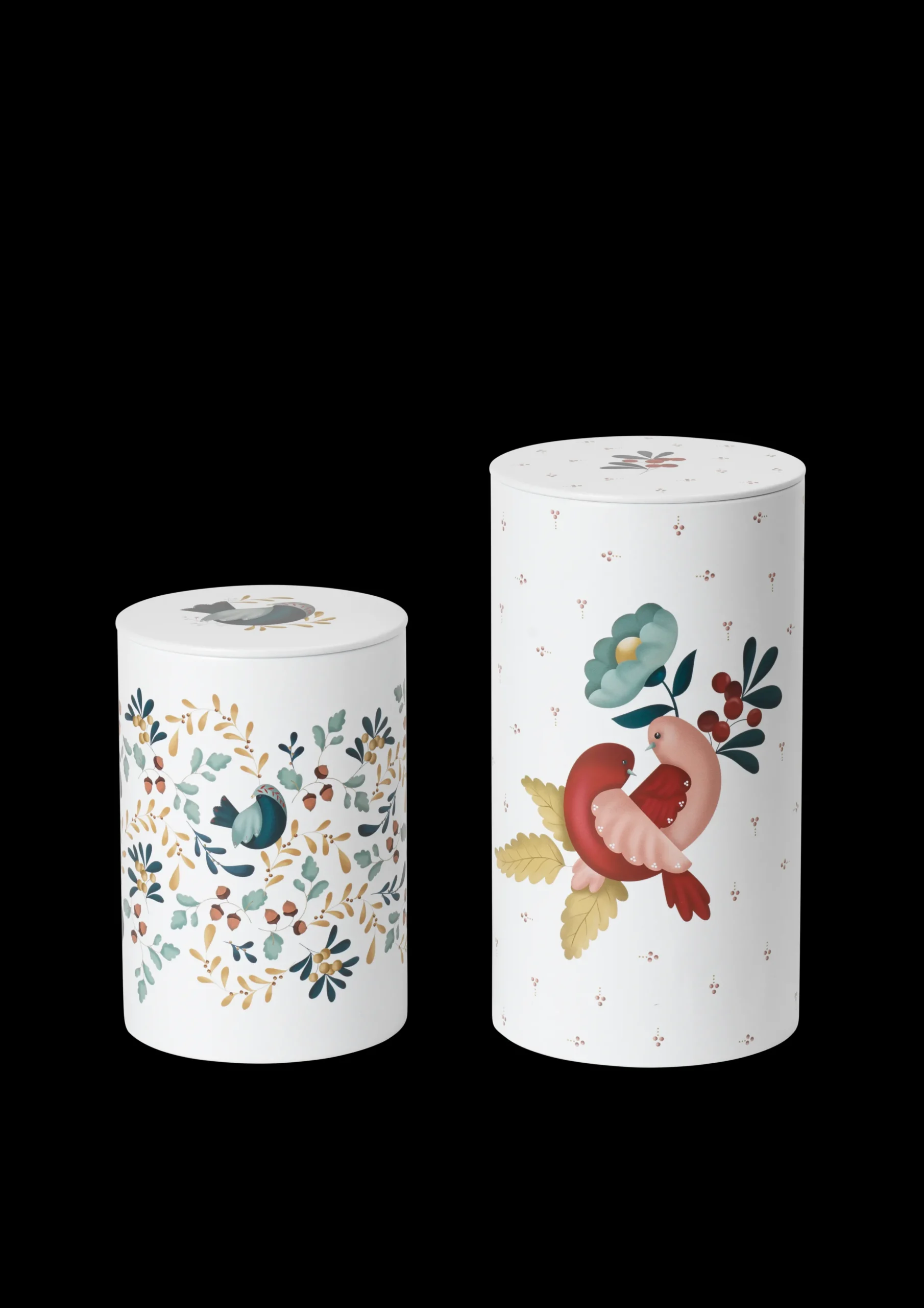 Moderne nostalgi og varme til alle de koselige øyeblikkene i de kalde månedene. Den minimalistiske Rosendahl-klassikeren, det ikoniske hvite Grand Cru-serviset, er kledd for høsthygge og julekos med norske Fam Irvolls maksimalistiske illustrasjoner. Kreativt og lekent henter hun inspirasjon fra fortiden og skaper med Grand Cru Cottage-serien et moderne og stemningsfullt uttrykk. På tvers av seriens tallerkener, skåler, krus og oppbevaringsbokser møtes den nordiske naturen med de klassiske julemotivene og vintagepynten i et herlig sammensurium. Det blir ingen julebord eller høsthygge på hytta uten den søte duften av klassisk bakverk. Og derfor inneholder Grand Cru Cottage selvfølgelig også en rekke oppbevaringsbokser – hele fire stykk – som i likhet med resten av serien prydes av Fam Irvolls motiver. Du kan få kakeboksene i denne pakken med to smale og høye bokser med en diameter på 10 cm, 11 cm, 15 cm og 20 cm i høyden, eller i seriens andre pakke med to bredere, men til gjengjeld litt lavere bokser. De kommer alle med unike dekorasjoner og har derfor et variert uttrykk, men fremstår likevel som en familie i en design som naturligvis også matcher hele Grand Cru Cottage-serviset perfekt. Grunnelementene i Grand Cru Cottage er blader og grener, bær, kristtorn, fugler, honninghjerter, glasspynt og eikenøtter, som er satt sammen i en unik komposisjon på hver del av serviset. Grand Cru Cottage er som en familie, der alle familiemedlemmene inneholder grafiske elementer innenfor samme fargepalett, slik at hver enkelt er unik, men likevel harmonerer. Felles for alle motivene i serien er at de herlige og nostalgiske uttrykkene skaper en ekstra hyggelig stemning som vil gjøre serviset til din nye favoritt gjennom høsten og julemåneden – både på hverdager og når det kommer gjester på besøk.