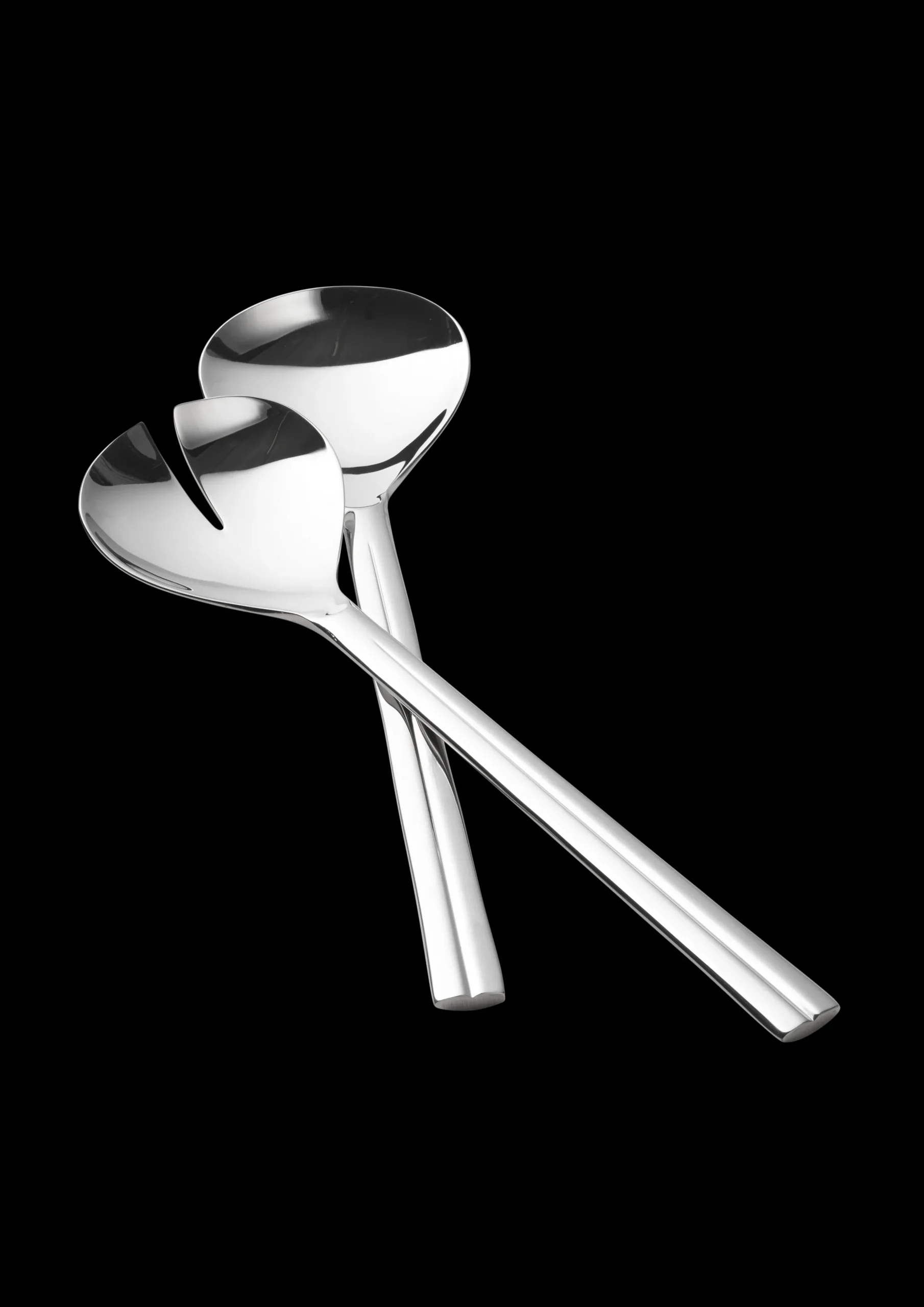 Salatsettet forener gleden ved å servere med tilfredsheten å jobbe med gode kjøkkenredskaper. Settet har et godt grep og en god vektfordeling. Settet er i rustfritt stål, og de rene linjene gjør det lett å kombinere både salatsettet og resten av serien med forskjellige sett.