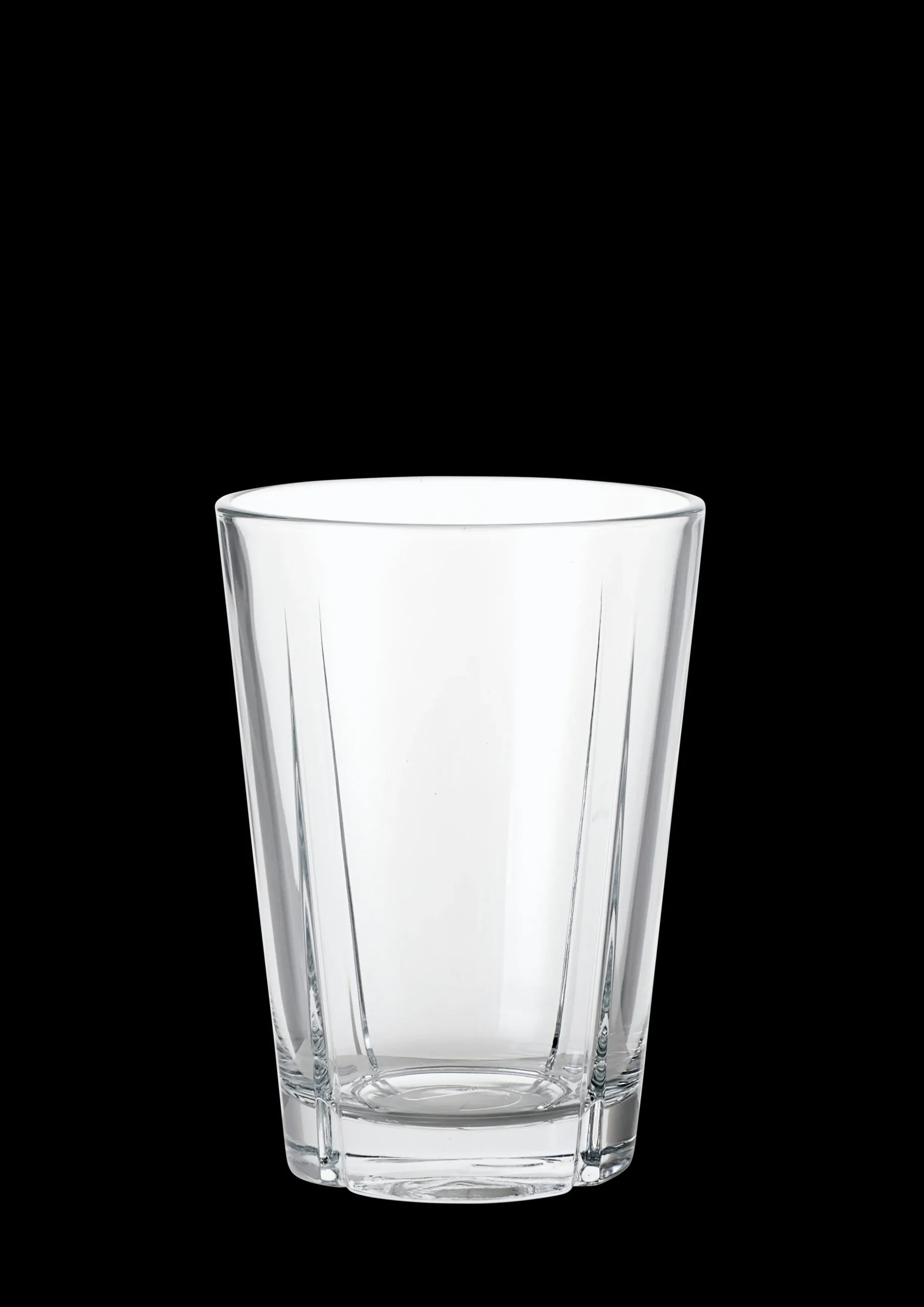 Disse vannglassene er blitt veldig populære. Ikke minst på grunn av den enkle designen, størrelsen og grepet. De er robuste og lette å stable i skapet. Bruk dem også til servering av mindre forretter og små salater. De rene linjene i designen gjør drikkeglassene brukbare med mange forskjellige serviser og bestikksett.