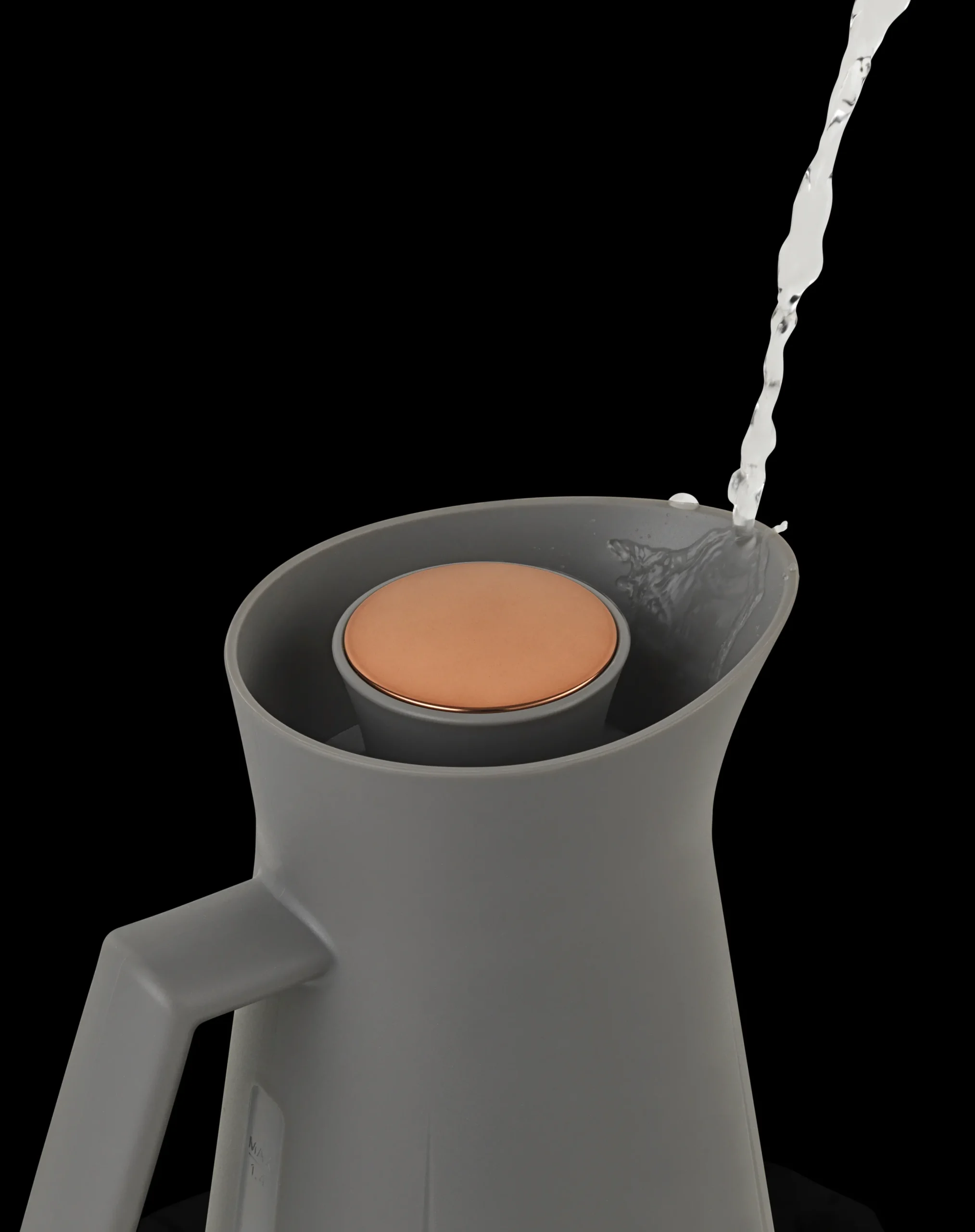 Den nye funksjonelle Grand Cru-vannkokeren fra Rosendahl er basert på det samme formspråket som den klassiske Grand Cru-termokannen. Den er fremstilt i BPA-fri plast og kommer i to fargeversjoner. Grand Cru-vannkokeren rommer 1,4 liter, og begge fargene fremhever på vakkert vis det klassiske Grand Cru-designet med de fire rillene. Den sorte vannkokeren har en base i rustfritt stål, mens den mørkegrå har en base i patinert stål som gir en flott, varm glød. Vannkokeren utmerker seg ved å være enkel å fylle og helle med. Du trenger derfor ikke å ta av lokket for å fylle på eller helle vann. Vannkokeren har et skjult ledningsfeste, og en base som kan dreies 360 grader, slik at du plassere den akkurat der du ønsker på kjøkkenbenken. 50-60Hz. 1850-2200W. AC 220-240V. CEE 7/17.