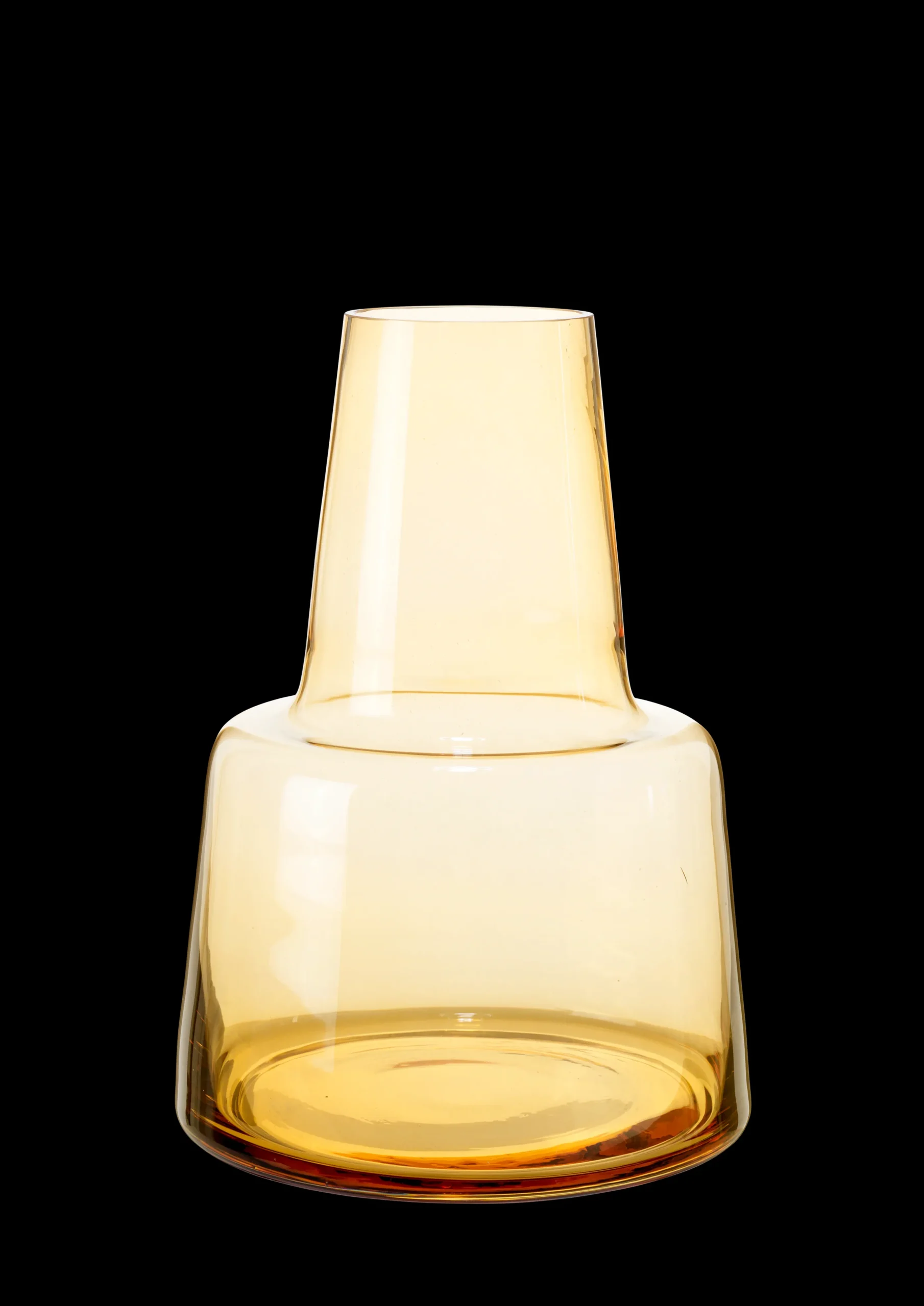This Flora vase in amber is made of mouth-blown glass and designed by Louise Campbell. The intention behind the vase is to give your fresh flowers plenty of water. The spacious bottom creates a solid foundation, and is an attractive match for the slender mouth at the top Ideal for long-stemmed flowers. Also available with a short neck in the colour amber.